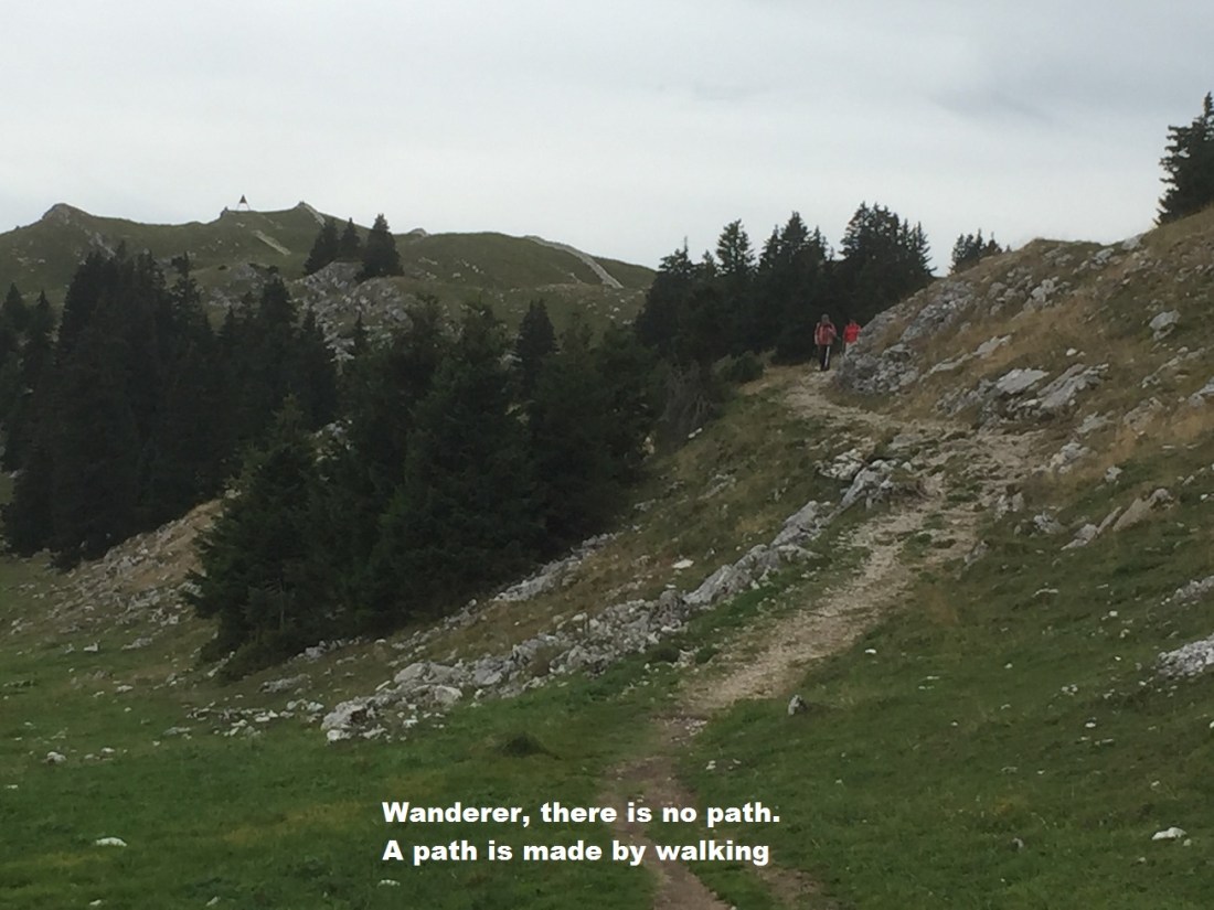 It was very close to this time that the Spanish poet, Antonio Machado, published his collection of poems Proverbos y Cantares, or “Proverbs and Songs” as an addition to his 1912 collection: Campos. It contains one of his best known poems, under the title Cantares. It is there that he says “Wanderer there is no path, the path is made by walking”.