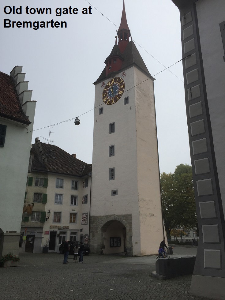 This brought me to Bremgarten. Although it is not well known, Bremgarten is another Habsburg town. It was granted its town charter in 1240, so it has a rich history of more than 700 years. And Bremgarten is a little gem. I came into the town past small houses with clinging vines and floral decorations. I took the time to walk its streets and admire some of the shop decorations. One of the things I like in these old Swiss towns is the way some traders have mounted their shop signs. There are no neon lights here. But there are very ornate metal signs that hang out into the street, as evidenced by the Kaffee Spatz and the Hotel Sonne. I walked down to the covered wooden bridge over the Reuss. In the middle of the bridge, on both the upstream and downstream side, are tiny chapels, presumably to ward off evil that might befall travelers of a bygone era. I stopped to have a snack at the Bijou Restaurant before going on my way again.