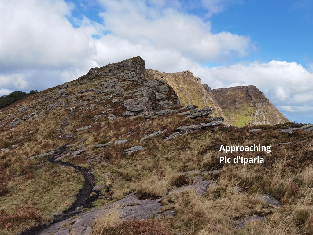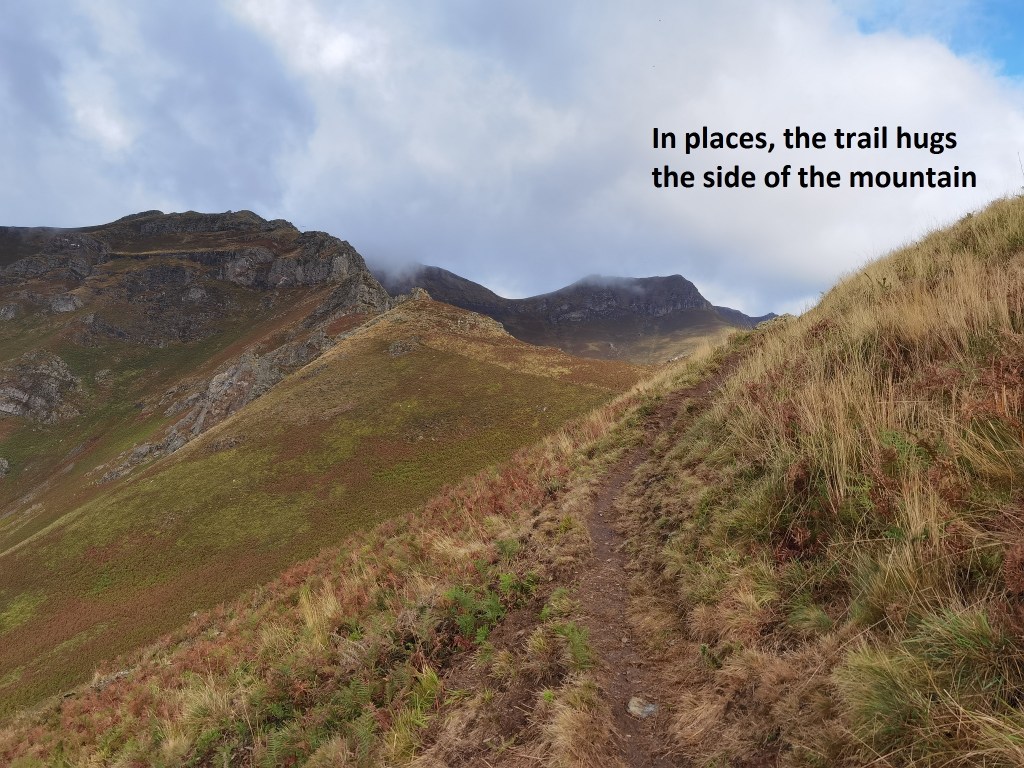 And then it was onwards. The route ascends to the north of the village, at first along the road, and then through the forest. It emerges from the forest to reach the crest of the approach ridge to Buztanzelhay. The path hugs the side of the ridge, first on the western side, and then on the eastern side, as it uses the contours to approach the main ridge.