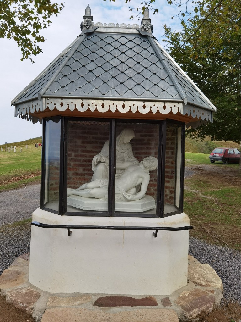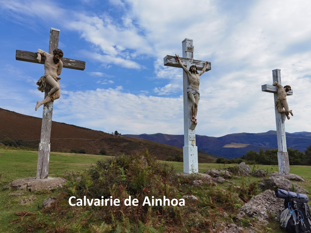 There are no more mountain-hugging difficult bits, but just a long slog to get to Ainhoa. The route twists and turns, coming to the Calvairie de Ainhoa just two kilometers before the village.