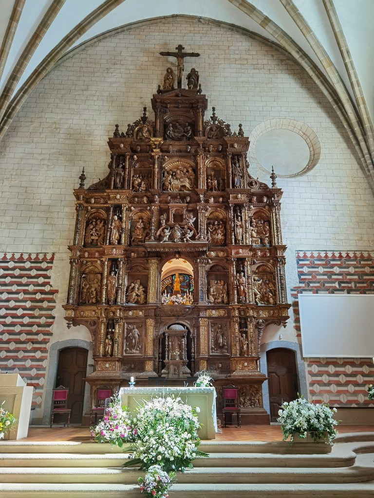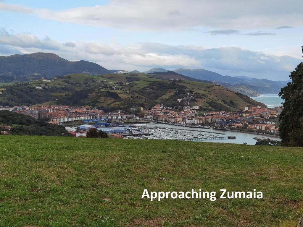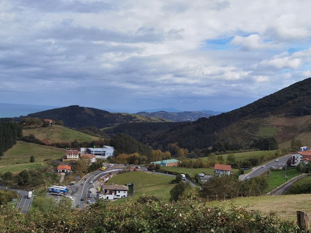 At least in Itziar, the church was open, and worth visiting. The altarpiece is magnificent, a masterpiece of decoration with biblical scenes. And just outside Itziar is a viewing point, where it is possible to look back over the hills I had crossed, as well as out towards the sea.