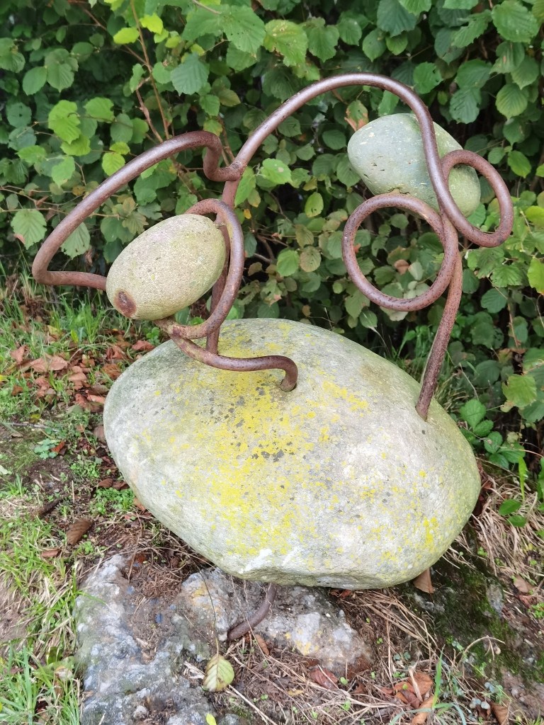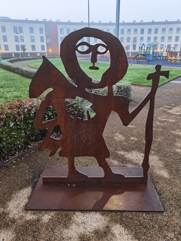 On the edge of town, I came across an artistic representation of a pilgrim. Do I look like that? And a little further on, another more abstract artwork. That one made me smile. The stone on the left looks like some kind of eye, watching the travelers go past.