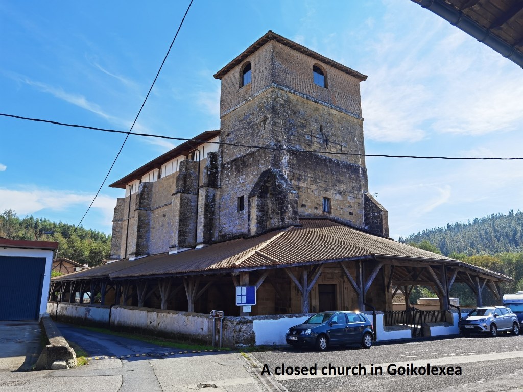 The only downside to such a scenic walk is that there are no towns or villages along the way. After about sixteen kilometers, I came to Goikolexea. It seems to be a residential town, with no shops or tabernas. And the church was closed. But just over a kilometer farther on I came to the town of Larrabetzu in perfect time for lunch.