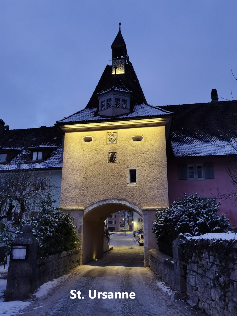 Dawn was just approaching when I reached St. Ursanne. I retraced the walk from the station into the town that I had made last week. Last week I was going up to the station; this week I was going down to the town. There were very few people about as I walked through the empty streets and across the bridge to the left bank of the Doubs.