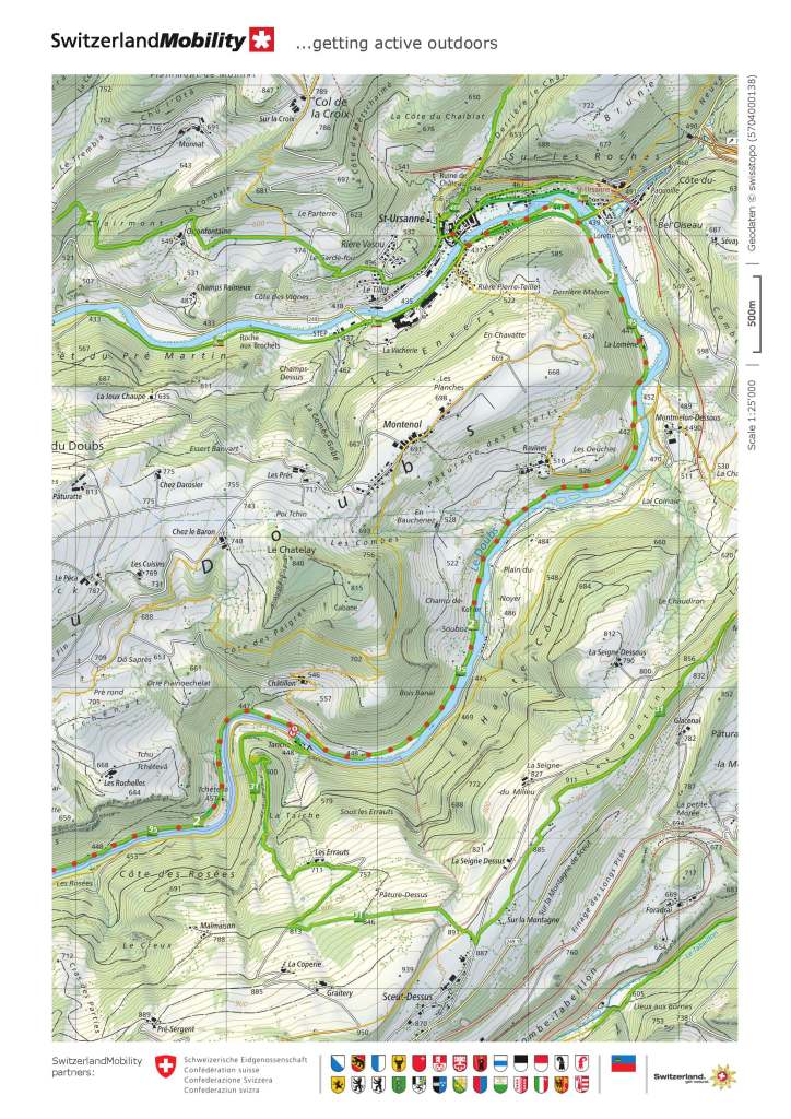 The Trans Swiss trail is 32 stages, according to the guidebooks and the website. Last year, the Jura Höhenweg, with only 16 stages, took me 14 days to complete over almost the entire year. So if I am to complete the Trans Swiss Trail in 2021, then there is no time to delay. And it was with that thought in mind that I set out to walk some more last weekend. I decided to combine two stages, walking from St. Ursanne to Saignelégier. The first part of this, from St. Ursanne to Soubey is listed as one stage, and from Soubey to Saignelégier as another. I reckoned that if I started early, I could do the two in just one day.