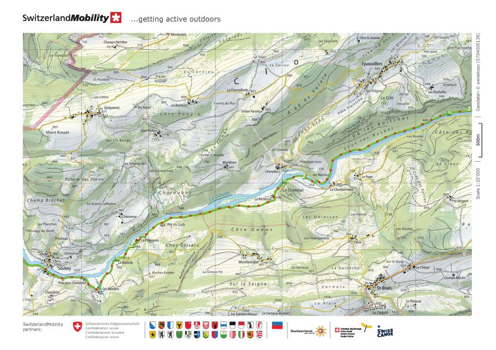 I did not go into Soubey. My route continued on along by the river. Shortly after Soubey, though, the official route was blocked. There was forestry work, tree felling, on the slopes below Les Hormets. The route was physically blocked. I could not hear any chainsaws, and could probably have followed the trail, but I decided to follow the road around instead. Timewise, it was not much different. That brought me to Lobchez.