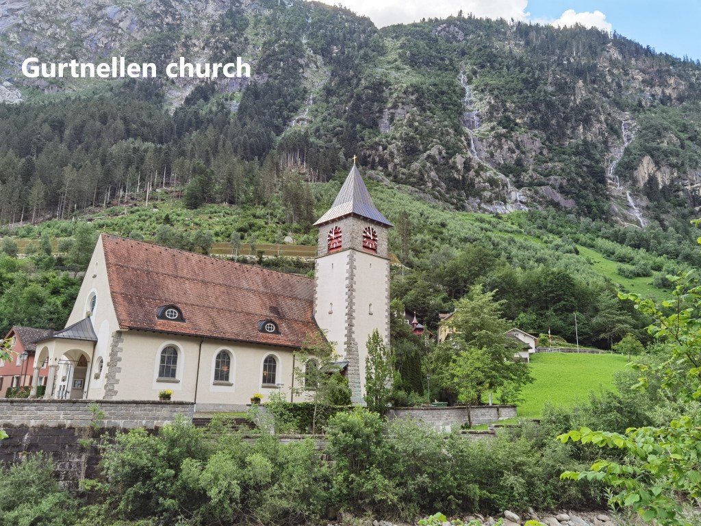 While this part of the route is interesting, a little further on is a monument that means more to me personally. On the edge of Andermatt stands the Kolumbanuskirche. It dates to the 13th century, and is in the Romanesque style.