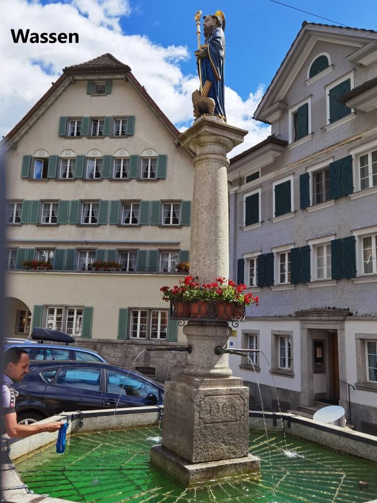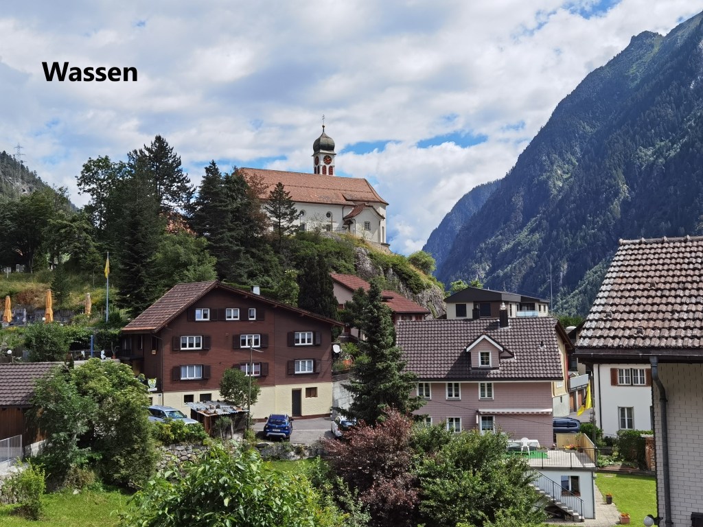 Wassen seems to be something of a magnet for various kinds of tourists, and on the sunny day that it was, there were cyclists, motor-cyclists, caravanners and people in convertibles all milling around the town, stopping for refreshments on their way to heaven knows where. I stopped briefly for a short rest, and then went on.