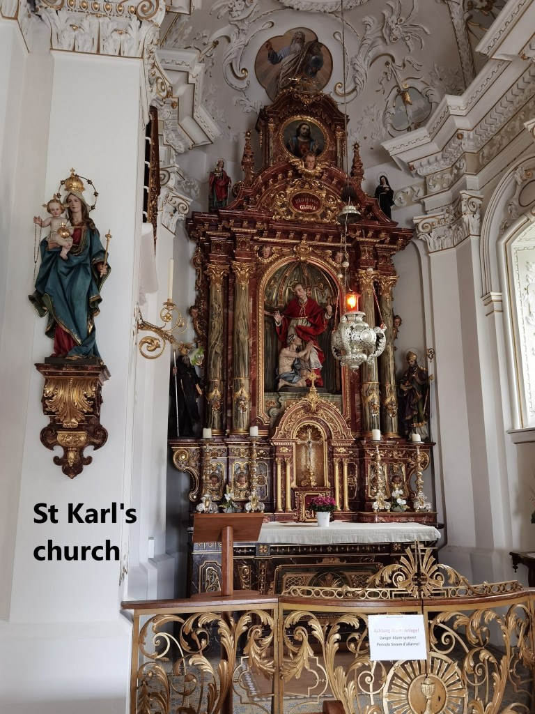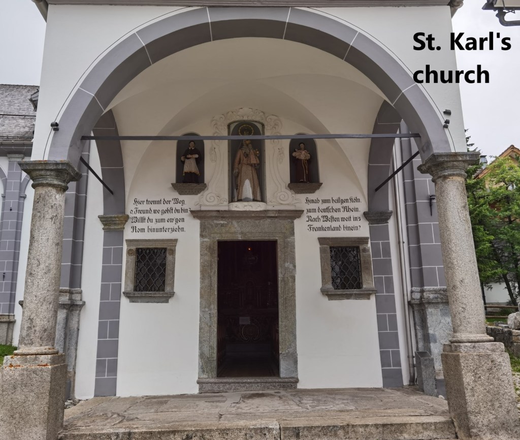 Hospental is younger than its neighbour Andermatt, with records of its presence going back to the twelfth century rather than the millennia of Andermatt.One of the more interesting sights in the village is the church of St. Karl. The church was build between 1717 and 1721 by Bartholomäus Schnid. The inscription at the door asks “This is where the road divides, friend, where are you going? Do you want to go down to eternal Rome? Down to holy Cologne, to the German Rhine, to the west far into France?” It echoes the position of Hospental and Andermatt as part of an Alpine crossroads. The church was renovated most recently in 2003.