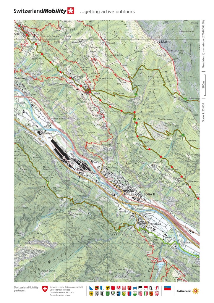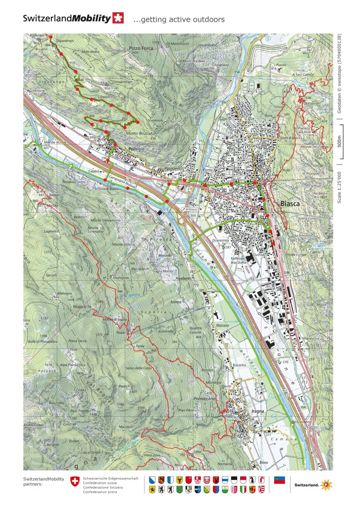 I went back on the trail at the weekend. With just 95km left to go to reach the end at Mendrisio, I want to bring this to a conclusion. However, the logistics of reaching the different sections has become more complicated. Starting from my home in Basel, getting back to Anzonico is not so easy. The earliest that I would get there was ten o’clock. And with rain forecast for the late afternoon and evening, that left a narrow window of time to complete the next section. But I reckoned that I could get to Biasca without much difficulty.