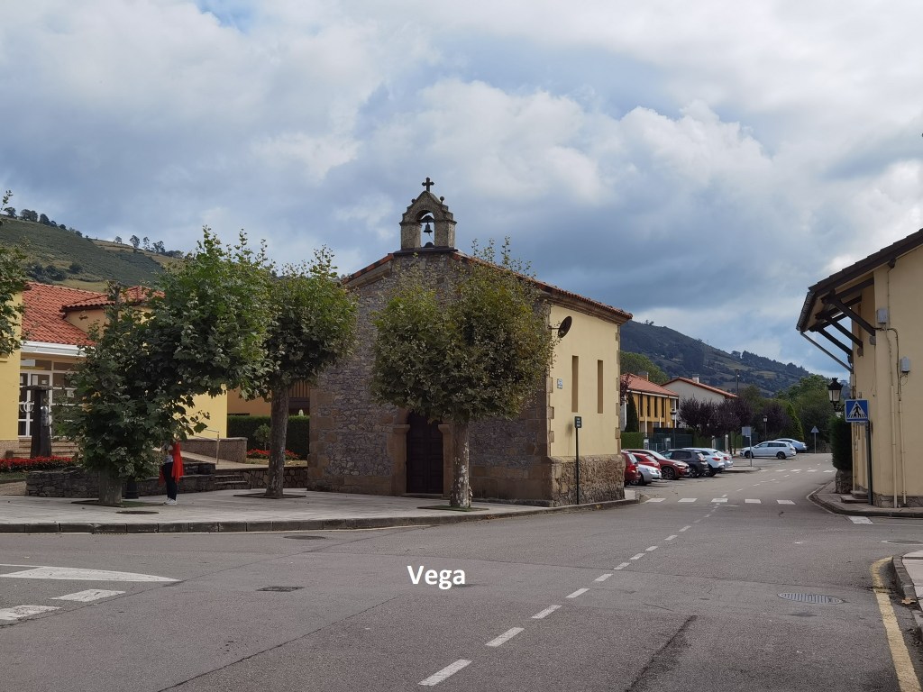As I approached Alto de la Campa, I saw what looked like a petrol station. Perhaps it would have a shop attached where I could get a proper breakfast. But alas, the petrol station is long since closed up, so I kept going until O reached the village of Vega. Yes, there is yet another village of that name. And that is where I stopped to rest and get a real breakfast.