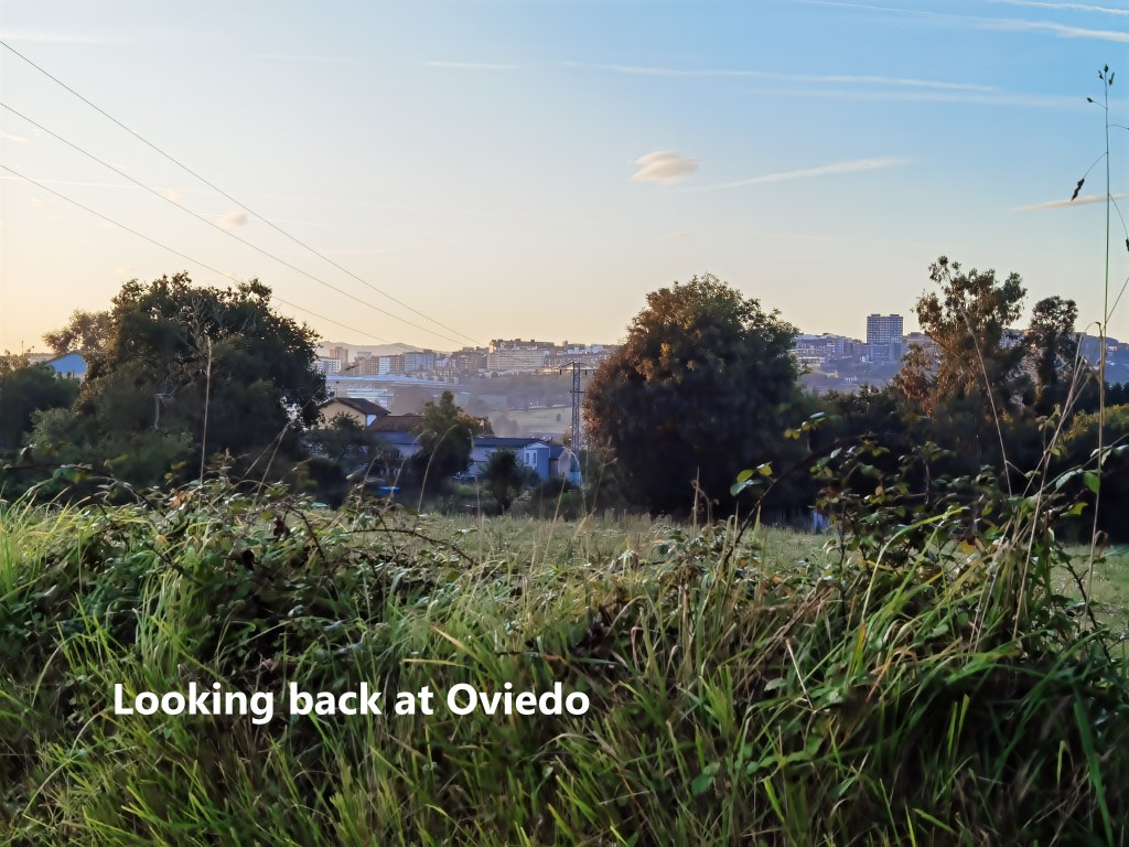 Sometimes, it can take several kilometres to get out of a city. Santander was an example, with several kilometres of car showrooms and furniture shops before the city was behind me. But in Oviedo, it was quick, and it was sudden. I went from the city centre to residential neighbourhoods of apartment buildings, and then suddenly I was in countryside, looking back at the city.