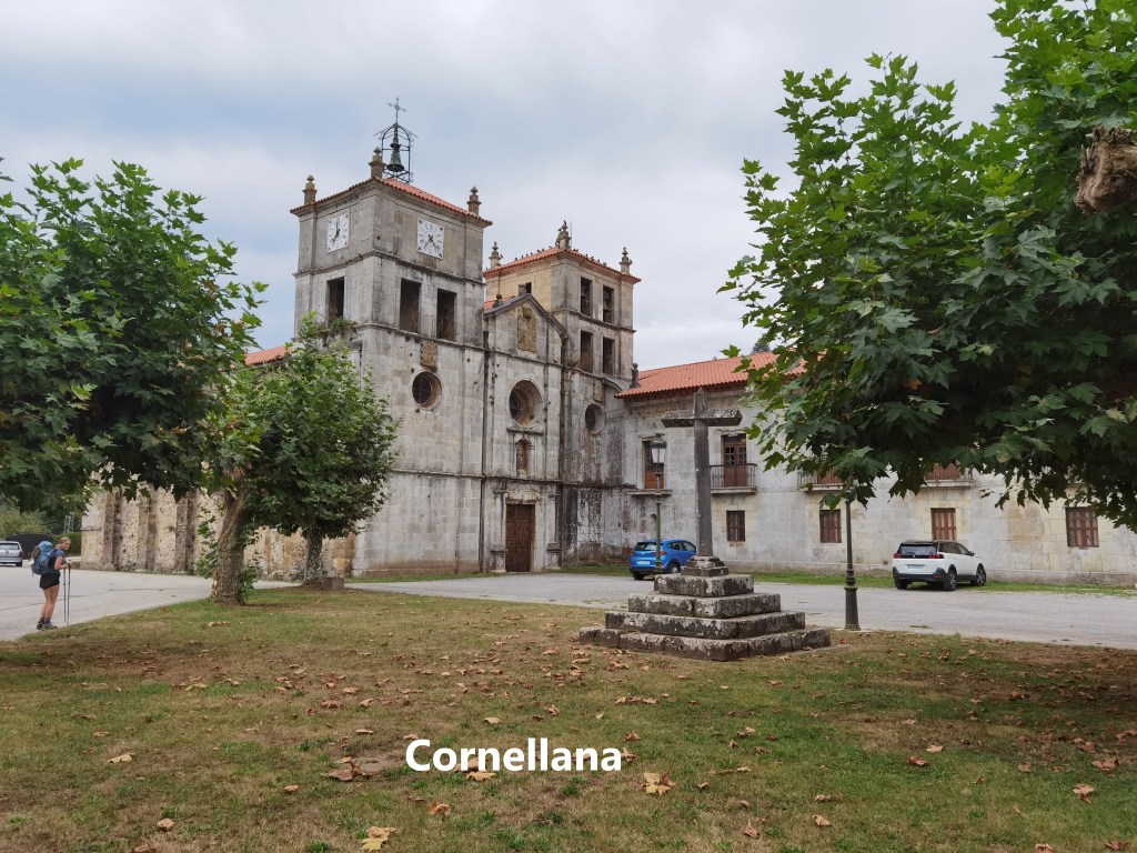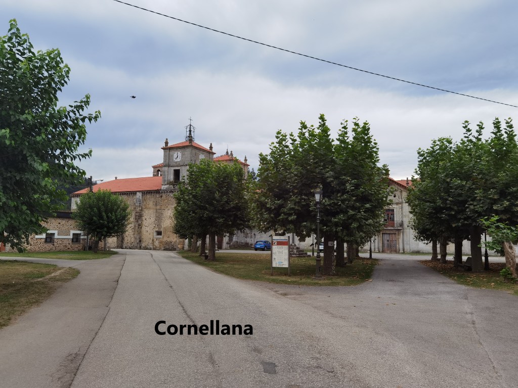 I passed Freisnu without stopping. Coming to Santa Eulalia de Doriga, I met some comrades of earlier days on the walk, and we continued together into Cornellana. The route allows the walker to skirt the edge of the town, but after the hill, we all needed refreshment, so we went on into the centre of the village. The village has a substantial monastery, but it was closed as we passed.