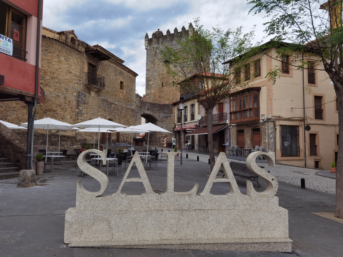 After Cornellana, the route begins to go uphill again. It goes through fields and forest, crossing streams on bridges from the seventeenth and eighteenth centuries as it makes its way to Salas. I had booked an albergue on the edge of Salas, so I said goodbye to my comrades there. Once checked in, however, I walked into the town to look around and to get some lunch.