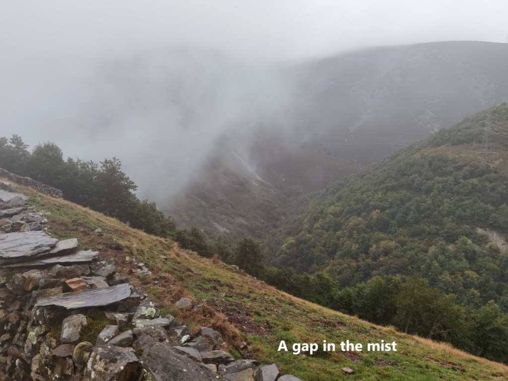 Going on, there were times when it looked like the mist might clear and the rain might stop, but these were false hopes. I could only continue on anyway. Montefurado might qualify as a village if there had been any people there, but it seemed completely deserted.