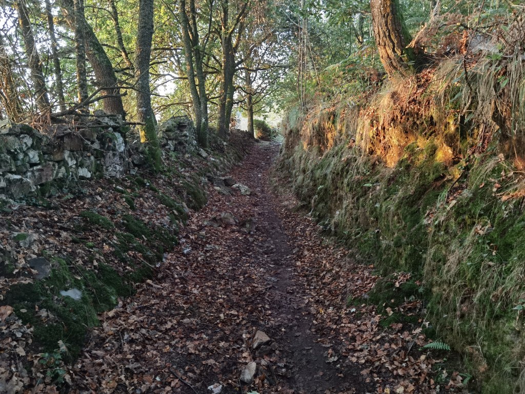 I went on through the village of El Acebo without stopping. After that, the route continues downhill. Mostly it stays close to the main road, but almost always on tracks off the road. A couple of hours later, A Fonsegrada finally came into view, though there was still some distance on forest tracks to reach the town.