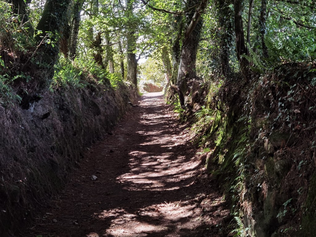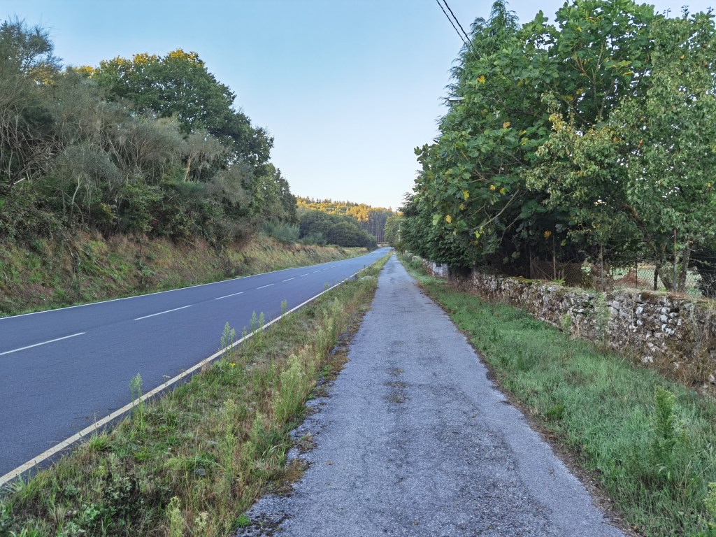 With Lugo behind me, the route was now on a country road. However, it is a fairly busy road, and I was glad of the track alongside, allowing safe walking. I continued in this way, going through a number of small villages: Burgo do San Vicente, Hospital, San Pedro de Abaixo, and so on. At times, the route would leave the road, becoming more like a woodland trail, but for the most part, the road was never far away.