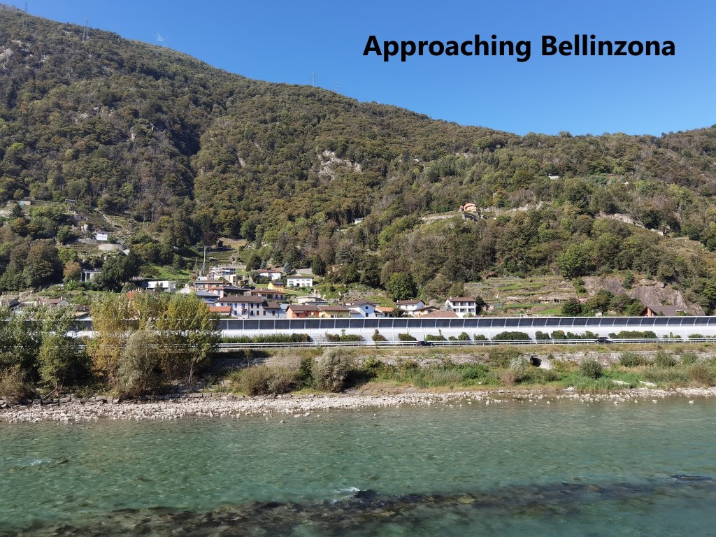 Arbedo is really an adjunct of Bellinzona, and the trail passes from one to the other without a clear signal of any border between the two. Also, the route does not go directly into the centre of Bellinzona, but initially skirts the town. In fact the true Swiss trail continues past the town, but there is a branch going into the centre. When the time came, I took that branch, and soon arrived at the railway station.