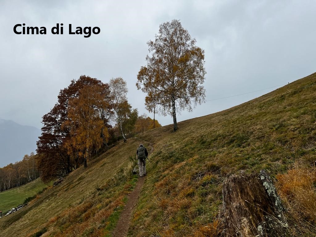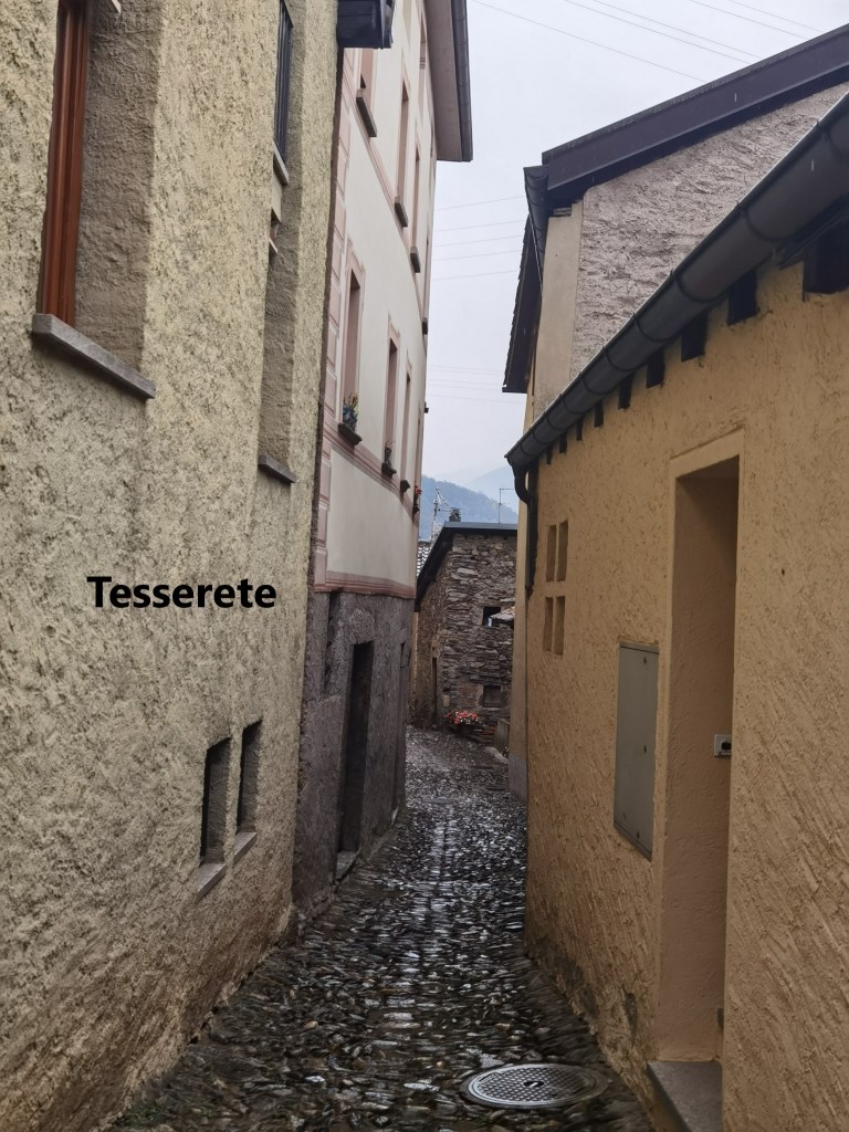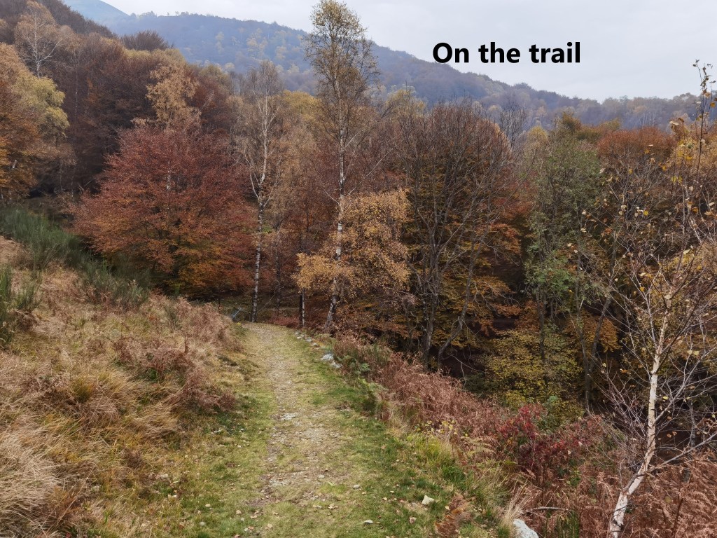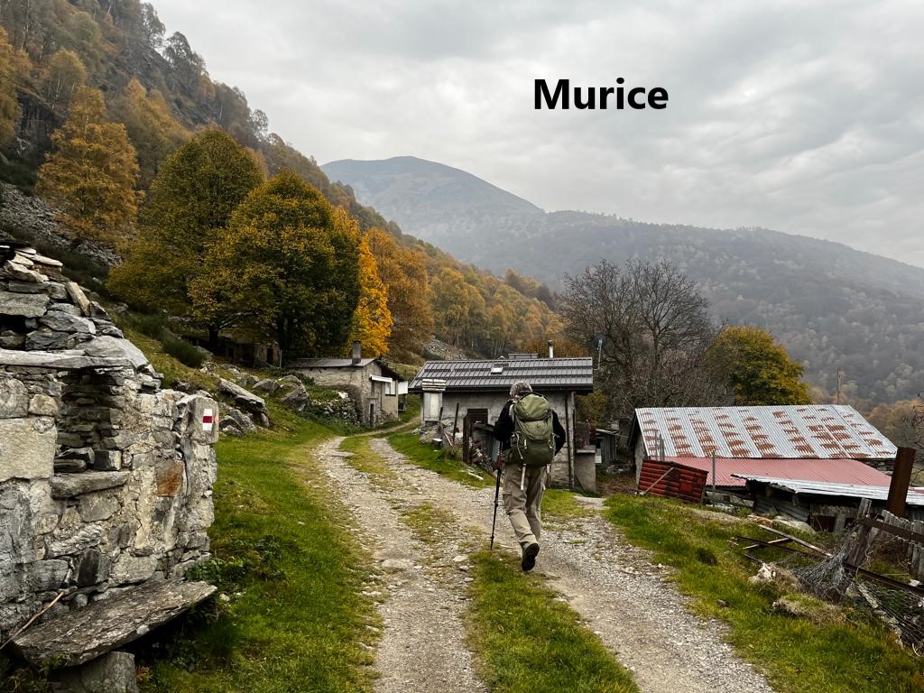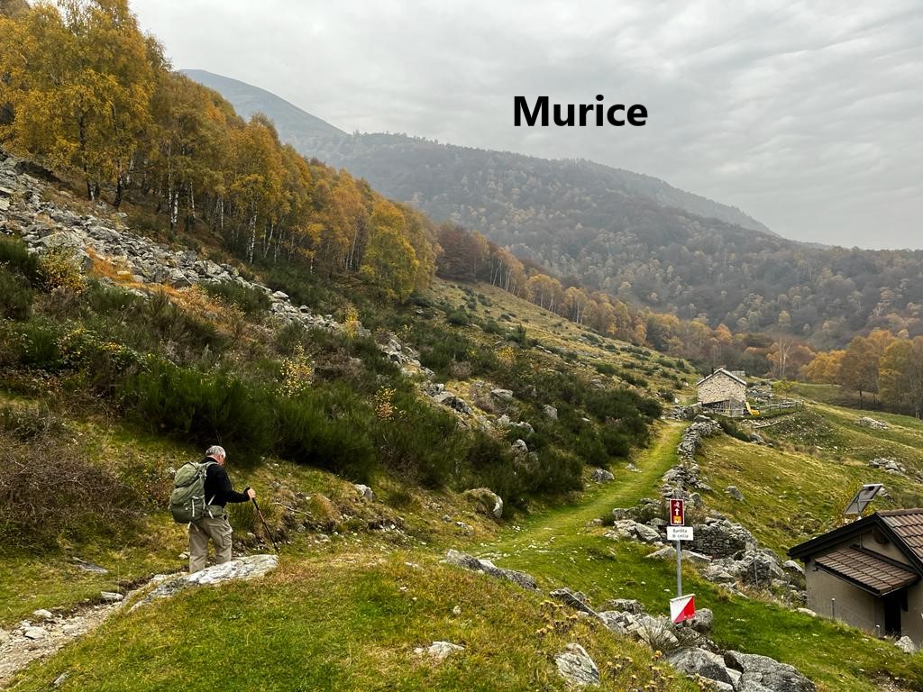 After Isone, the trail goes back up to reach a small isolated settlement at Murice. There were few signs of life in Murice, but for us it was the start of a relatively flat stretch of walking. After the effort of the ascents, this was welcome. The route did not go up or down much for the next few kilometres until we came to the junction at Gola di Lago. The route number 7 goes straight on, but our trail, number 2, turns left. On the Cima di Lago, it reaches 1029m, and then begins a descent. It is gradual at first, and then a bit steeper, going through the village of Bigorio to reach Tesserete.