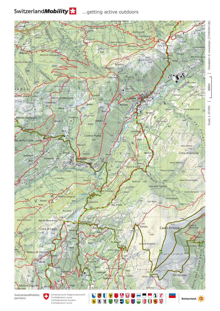 The route continues upwards, and it was a long ascent from Giubiasco at 230m to the crest of the trail at just over 1000m, From there, the route went downhill slightly to the village of Isone. Isone’s main claim to fame is that it is the location of the grenadier school for the Swiss army. However, for Matthias and myself it was a place to get a welcome beer before going on.