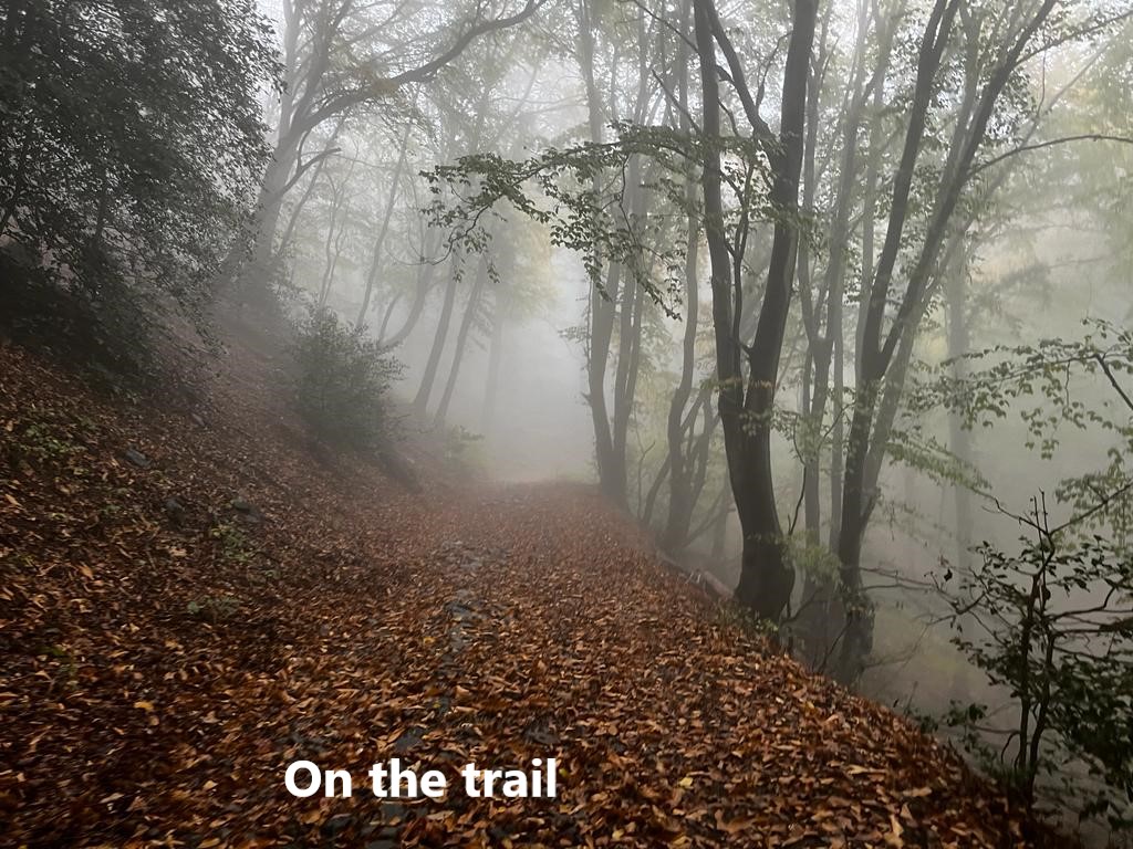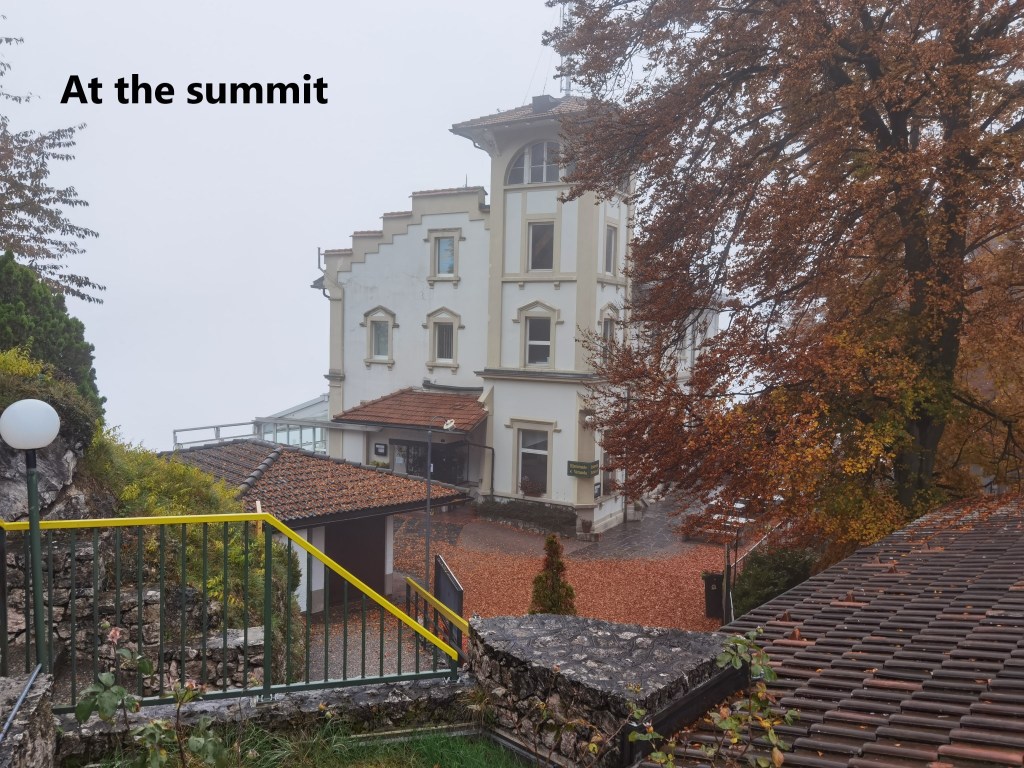 We came to the top of the mountain, which has a railway station, and what looks like a hotel. I imagine that in summer this place is crowded, but on a damp day at the end of October, there was no one else there. We did not stay long, but immediately began the descent southwards. The descent is steep at first, until it reaches the village of Ciona. After that, the route levels out for just over one kilometre as it goes to Carona, another mountain village.