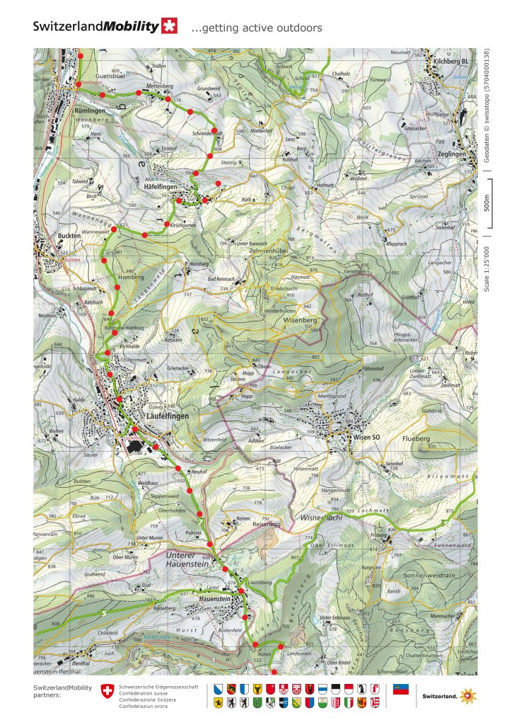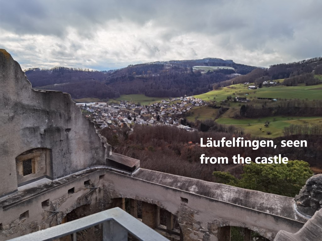 I went on through the village, and the higher ground beyond. It was easy going, through fields at first, and then along the edge of the woods. As I turned to go south again, the village of Buckten came into view. Then there were the Rütiflue cliffs, before I came to the castle at Homburg.