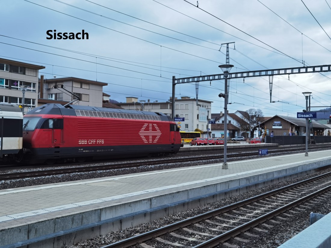 After crossing over the covered bridge, it was only a short walk to the train station. I could have got a train on the main line to Basel almost immediately, but I decided to wait for one that would take me back through the Homburgertal. After going through the tunnel under the Hauenstein Pass, it was snowing when I reached Läufelfingen station. It was still snowing as I went over the Rümlingen viaduct, all very different from when I stopped there earlier in the day. I had been lucky with the weather on my journey. I had to change trains in Sissach, which makes this line less convenient than the main Olten-Basel line. But this is a line with an uncertain future, so it needs all the travellers it can get to justify its continued use.