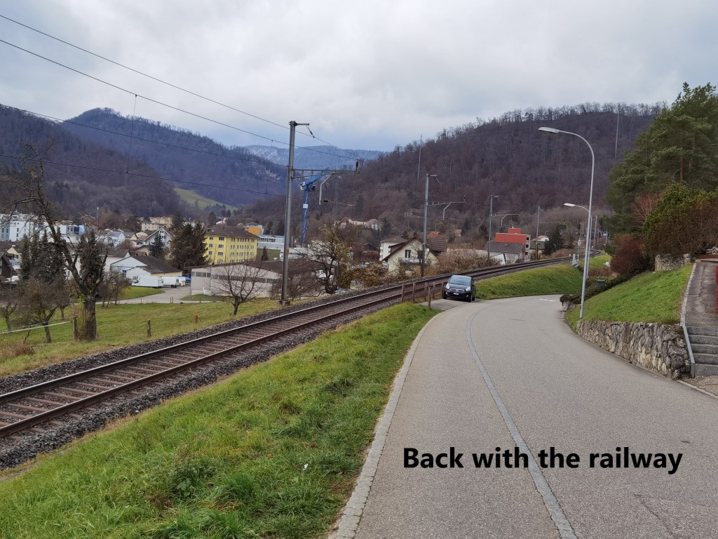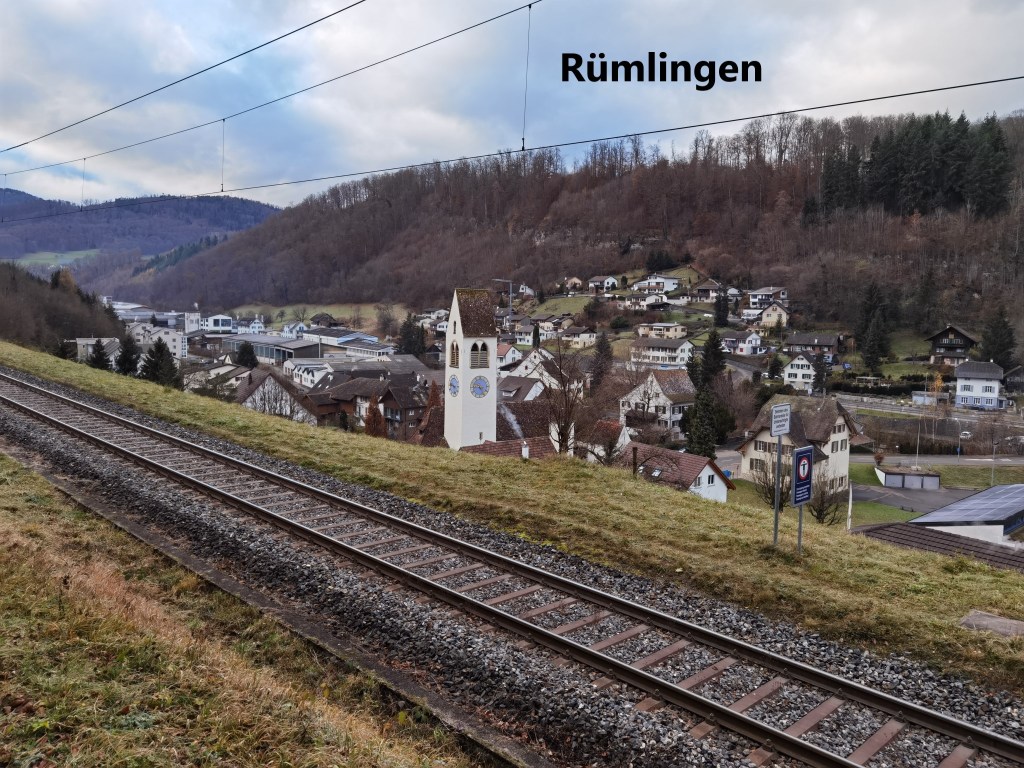From Sommerau, I continued alongside the railway line. My route followed a track, with the railway just below to my right. And following the railway meant no steep gradients, which made for a good walking pace. That tack brought me to Rümlingen.