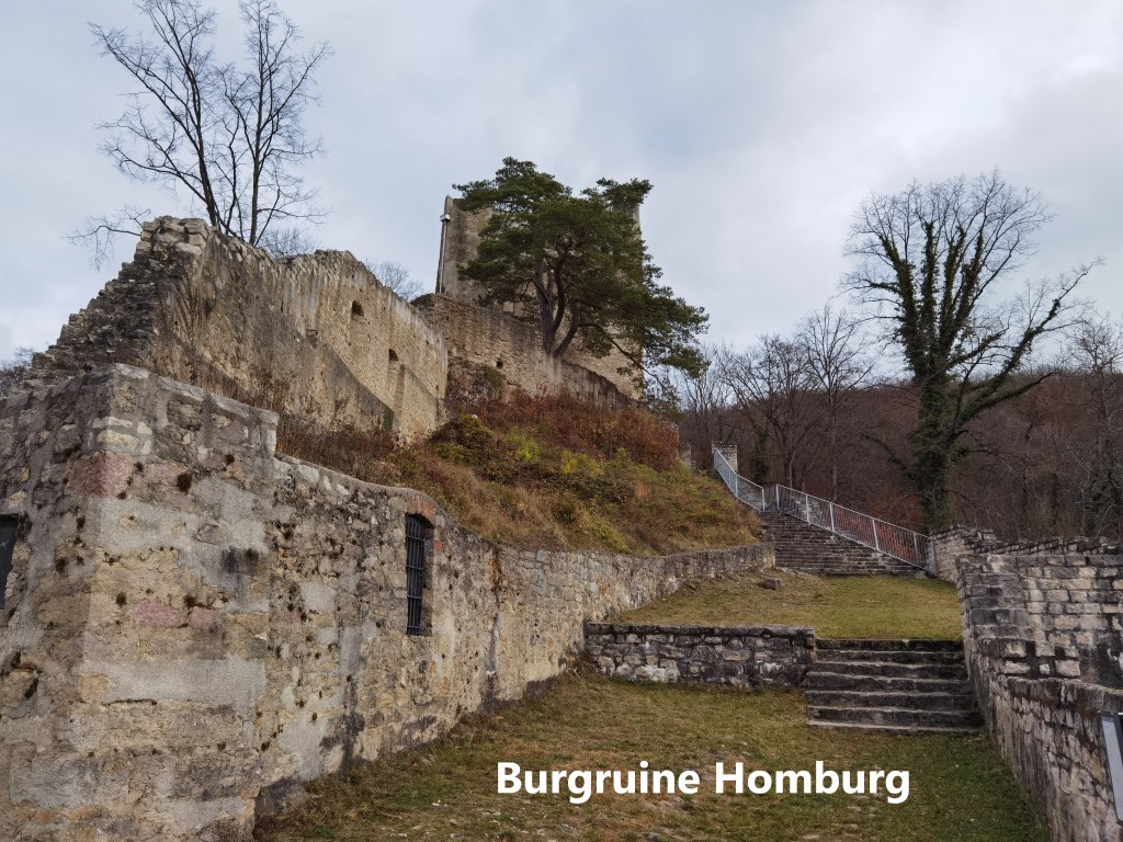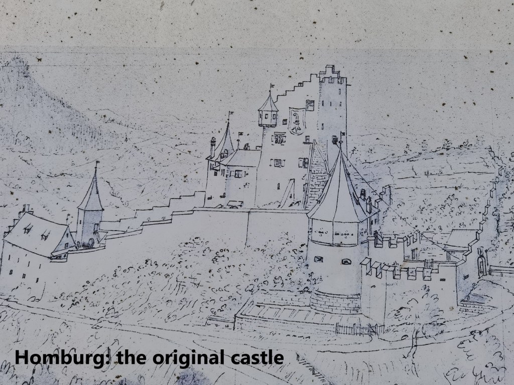 The castle at Homburg was built by Count Herman von Froburg in 1240. He named it Neu-Homburg in honour of his wife who was heir to an estate called Homburg in the Fricktal area. Over time, the prefix was dropped, and the name Homburg remains, giving that name also to the stream that runs through the valley, the Homburgerbach, and indeed the valley itself, the Homburgertal. The von Froburgs were not rich enough to maintain the castle, and in 1300 they needed money. The castle was sold to the Bishop of Basel along with the surrounding villages and estates. A hundred years later, the bishop sold it on to the City of Basel. The city installed a bailiff to oversee the castle and its estates, and so things remained for almost 400 years. But in the 1790s, after the French Revolution, there was a lot of agrarian unrest in Basel canton. Things came to a head in January 1798. With the threats of attacks on the castle, the bailiff took what he could of value, and fled. The peasantry attacked and ransacked the abandoned castle before setting it on fire. After the fire, the ruin passed into private ownership, and it was actually used as a source of stone for other building work. The ruin became heavily overgrown and remained in disarray until the Basel Landschaft authorities organised some restoration and conservation in 1937. There was further work done by Basel Landschaft in the years 2008 to 2010 to preserve the site and make it the imposing ruin that it is today.