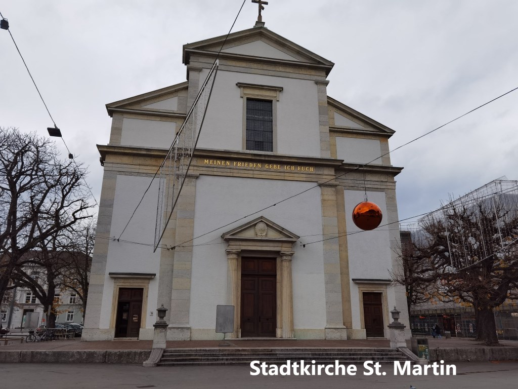 Entering the city, I came to the Aare. I last saw this river in my wanderings through Bern canton on the Trans Swiss Trail. But in Olten, it is much bigger. I had a little bit of time to spare, so I went into the older part of the city. My first call was at the Stadtkirche, dedicated to St. Martin. The building dates back to the middle of the nineteenth century.