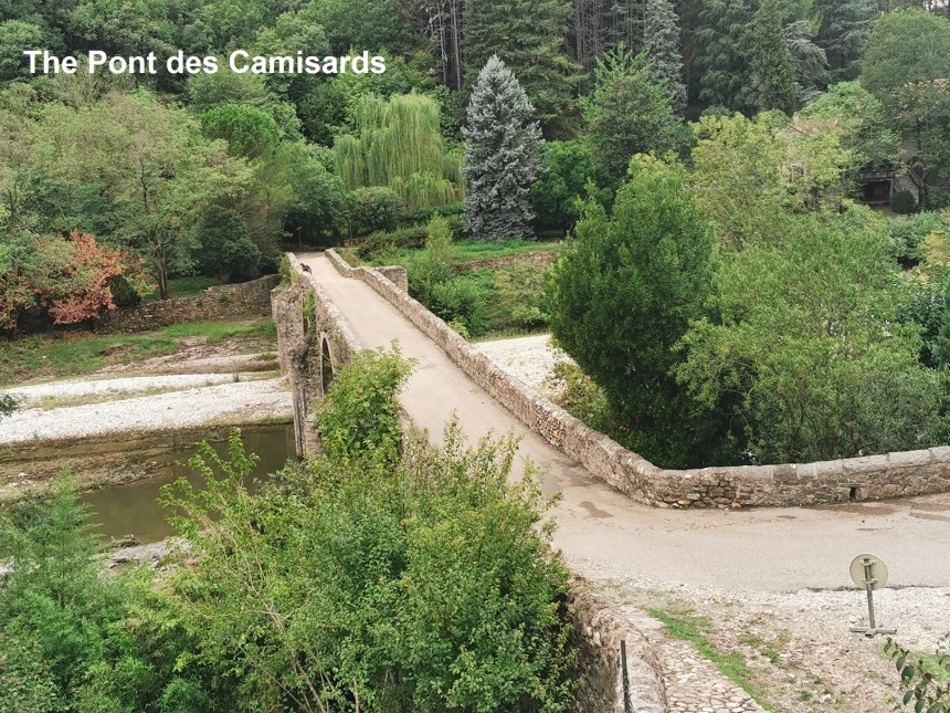 We came into Mialet across a stone bridge called the Pont des Camisards. It was built between 1714 and 1716, at the end of the Camisard wars. For almost the next two centuries, it was the only stone bridge across the Gardon de Mialet.