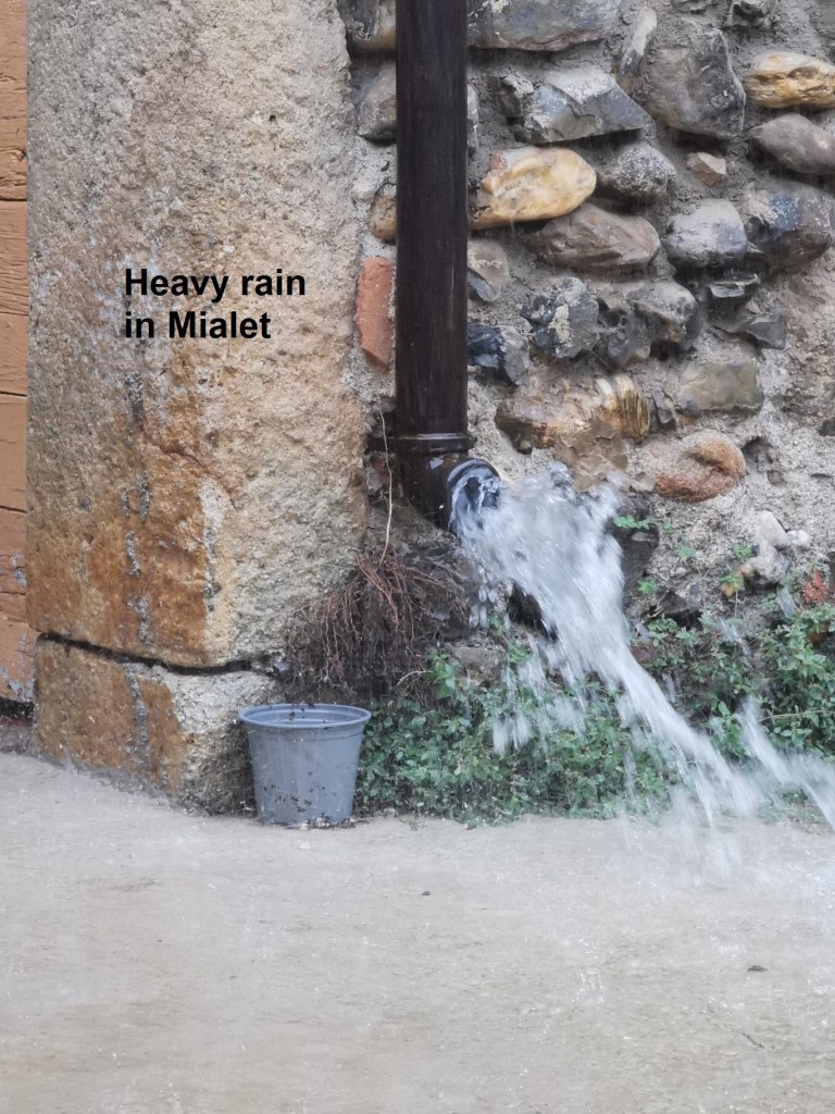 This gite was effectively unstaffed, but it had a volunteer guardian who showed us to our room. He explained the system to us. There was a small pantry with food priced for sale. It worked on an  honour system, with an open cashbox nearby. He explained that we could also buy food in the bar, which was also an épicerie. So back to the bar we went and got some food. While we were in the little épicerie, it started to rain, very soon there was a violent thunderstorm in full swing. We had no choice but to wait it out, enjoying a beer while waiting.