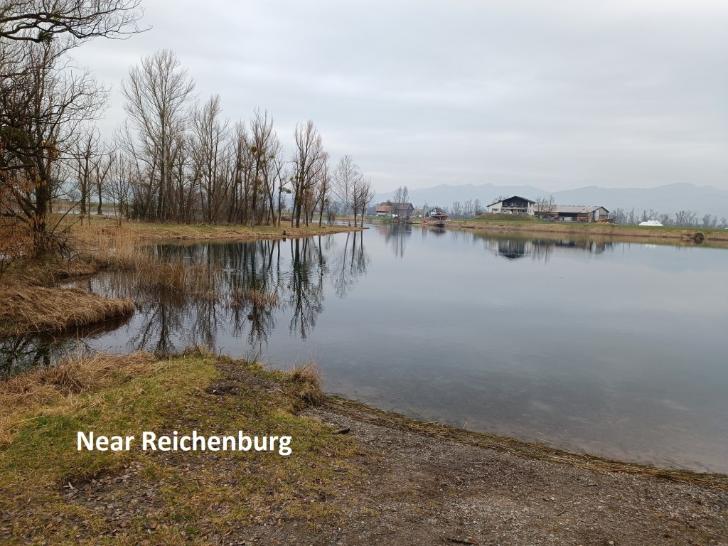 The entire day’s walk was relatively flat, and the next piece between Bilten and Reichenburg was a perfect example of that. The fields stretched out to the east, where the mountains were still covered in mist. At Reichenburg itself, the route passes by the edge of a pond, with this water feature providing a welcome break from the otherwise drab flatness of the landscape.