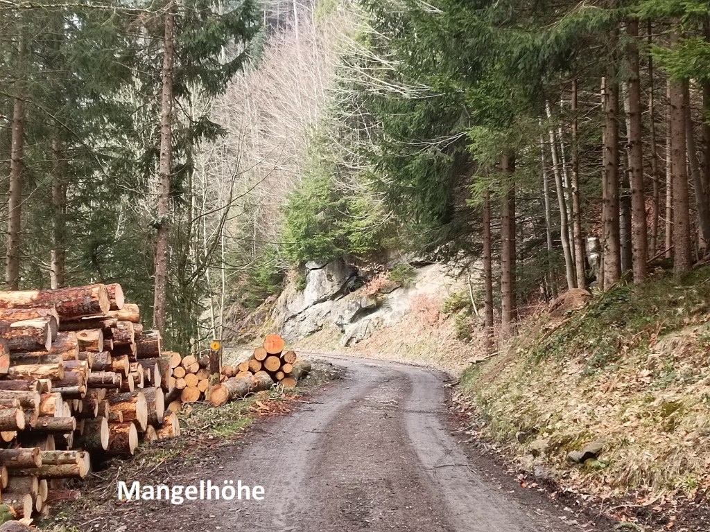 I continued up the trail to the Muetegg ridge. There is a summit marked on the map, at 1205m, but in reality, the route is flat going through the forest. It continues for about a kilometre and a half, long enough to be boring, with nothing to see in any direction, except trees and more trees. Eventually, I emerged at Mangelhöhe, and from there the trail skirts the edge of the forest, with some great views of the Ägreisee to the south.