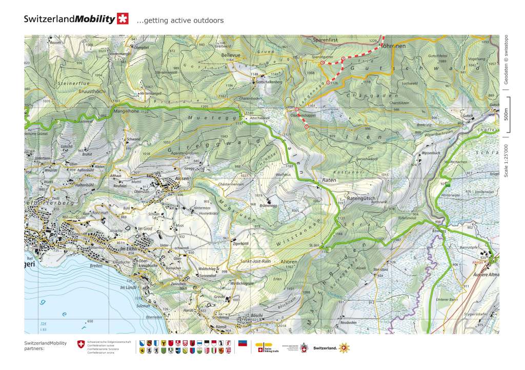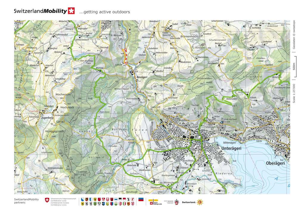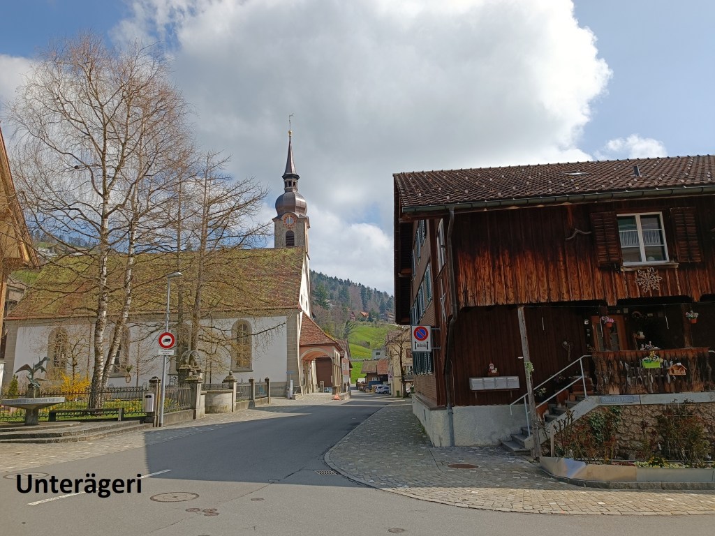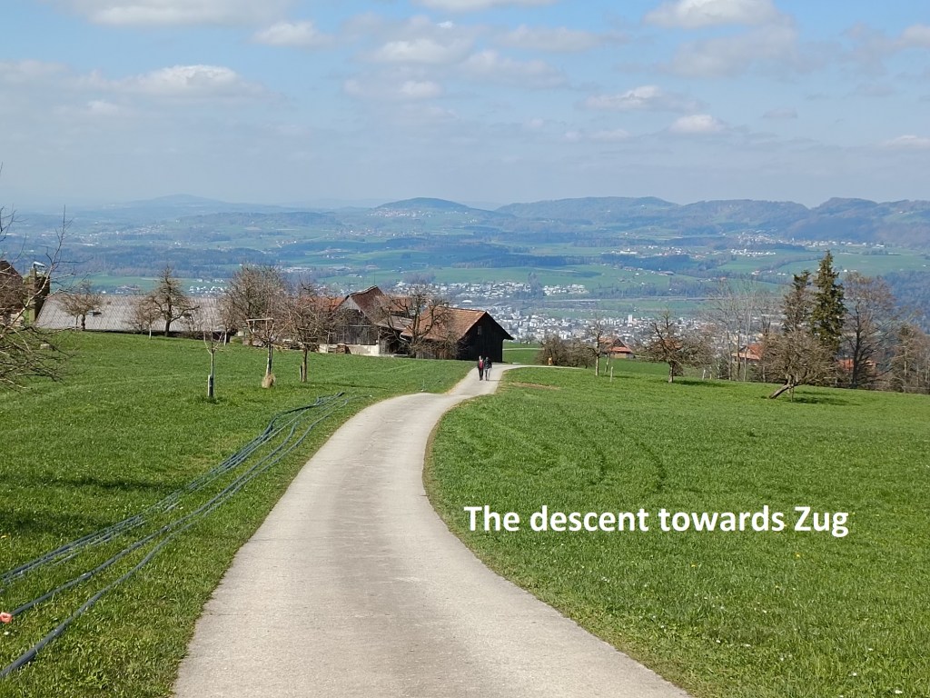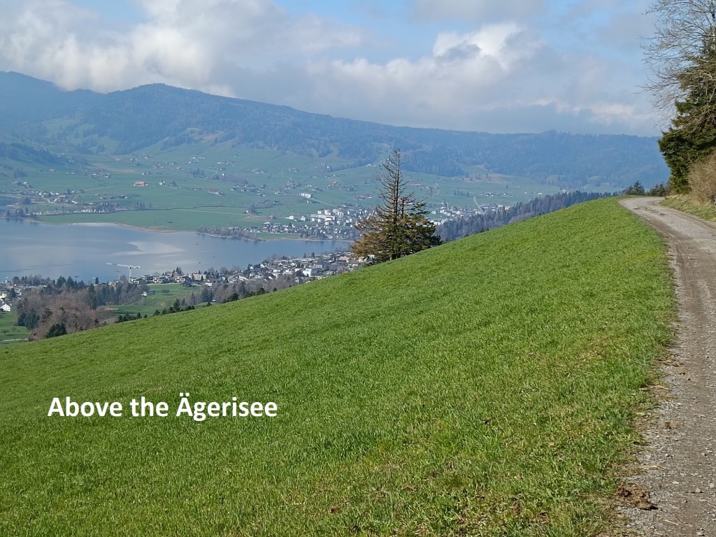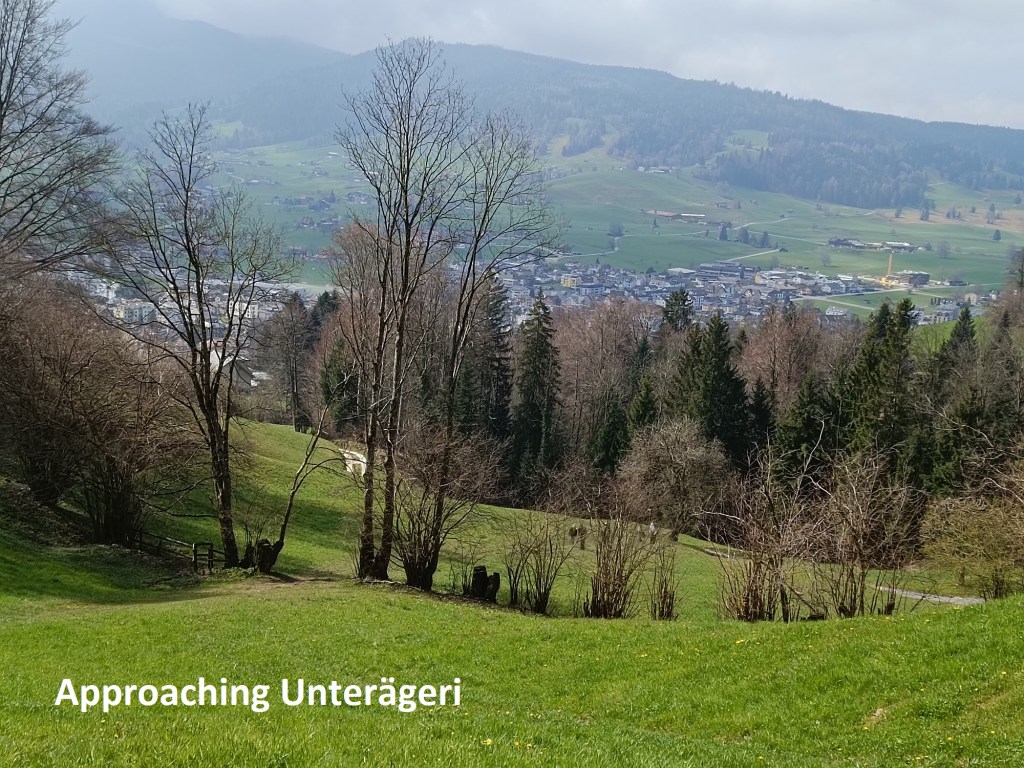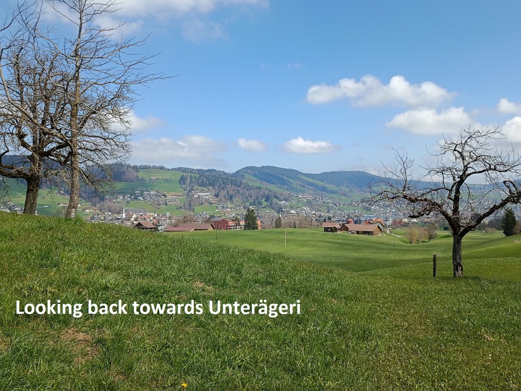 The route goes downwards, slowly but steadily. It rises again going onto the  Wilderberg, where I had a great view back over the route down from Mangelhöhe. And once past Wilderberg, it was a steady descent into the town of Unerägeri.