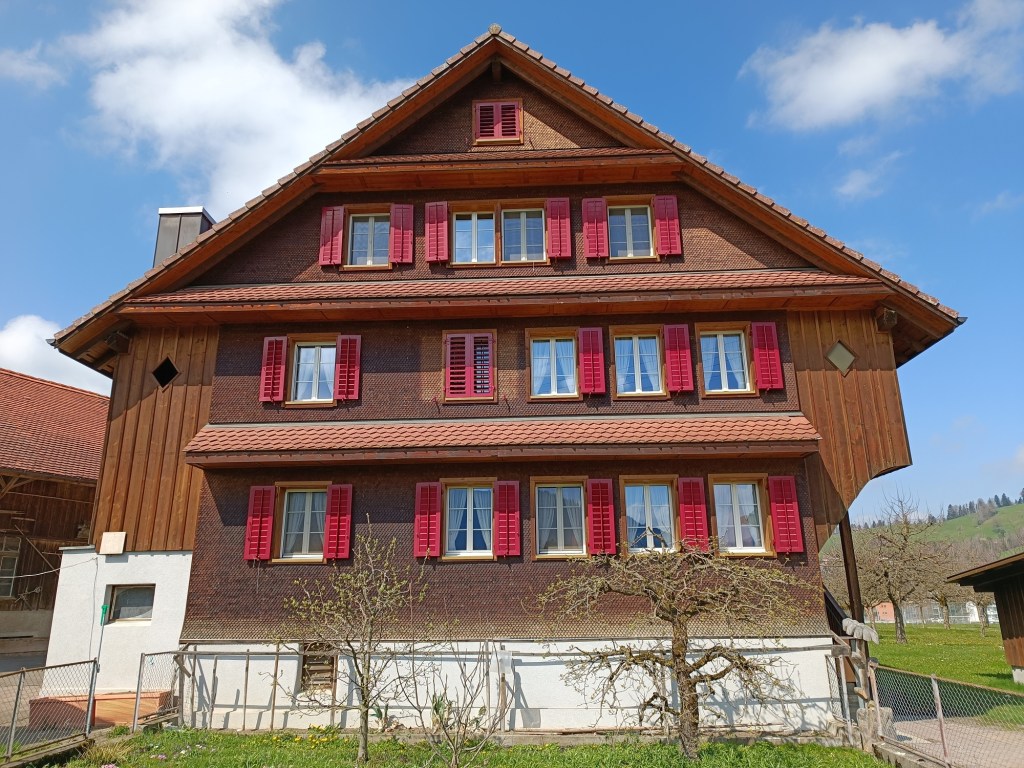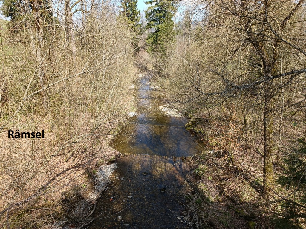 Leaving Unterägeri, I had a choice of two routes. The shorter straight route would take me almost due west out of town, but I decided to take the slightly longer route that circles around to the south a little. This brought me past farmhouses and farmland, and was relatively flat until I crossed the small river Rämsel.