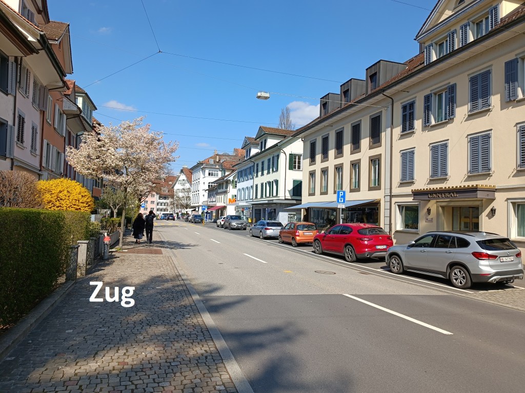 The route into Zug came down by the Altstadt, or old town. As a town, Zug goes back to about 1200. As the town developed, in the early fourteenth century, it had an on-off relationship with the fledgling Swiss Confederacy. It finally joined the confederacy in 1364 and has been part of Switzerland ever since. Today, The town of Zug is at the centre of a canton of the same name.