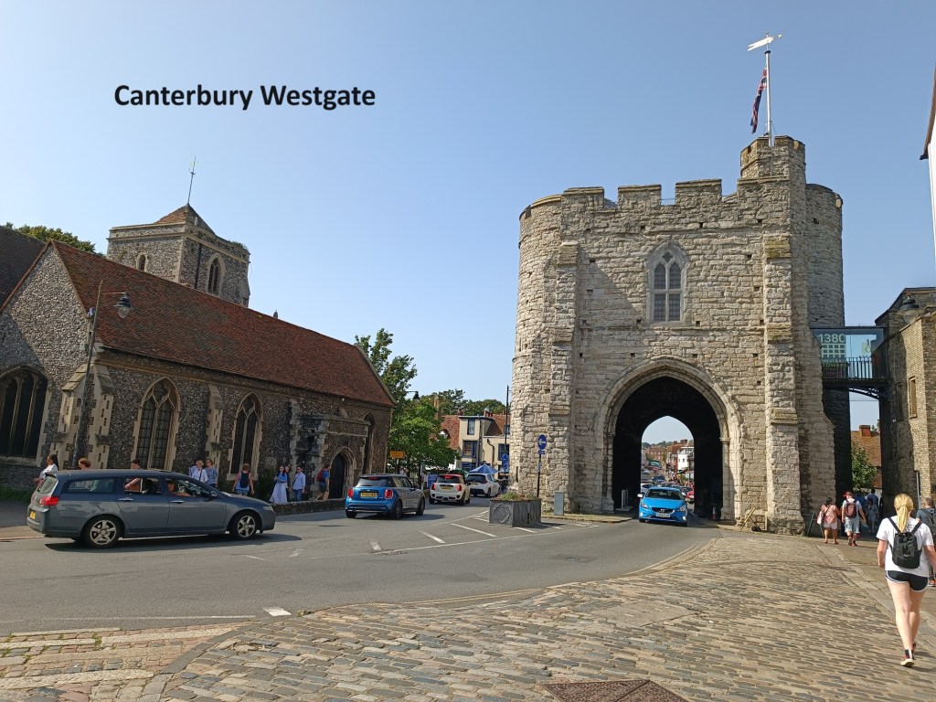 I arrived in Canterbury on 9th September in the middle of a warm sunny afternoon. Summer had not yet given way to autumn, and the town was busy. I went straight from the railway station into the town centre, passing through the Westgate. The gate was built in 1380. Even then, Canterbury was a city of importance. The gate has been modified over the centuries. One of the first modifications was the addition of gunloops in the towers in 1404. Gunpowder had just arrived in that part of the world, though not in widespread use until later.