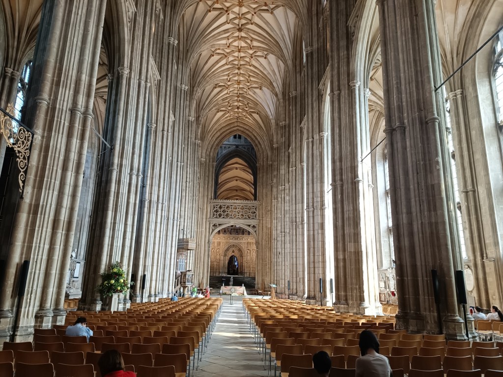 After walking around the Cathedral, I rushed off to my lodgings to drop off my rucksack and come back for Evensong. It is a measure of the status of religion today that the Evensong service is confined to the choir area of the Cathedral, while the main body of the building is empty. I had never attended an Evensong service in any church before, and I found it an interesting mixture of song and prayer. One of the psalms chosen was a bit disconcerting. Psalm 47, which was part of the service, contains the line: “He shall subdue the people under us, and the nations under our feet.” It sounds like a justification for colonialism. The service ended with a blessing. I left with mixed feelings. I felt concerned, as I say, about the choice of psalms on the occasion, though I appreciated the quality of the singing, and the blessing wouldn’t do my enterprise any harm.
