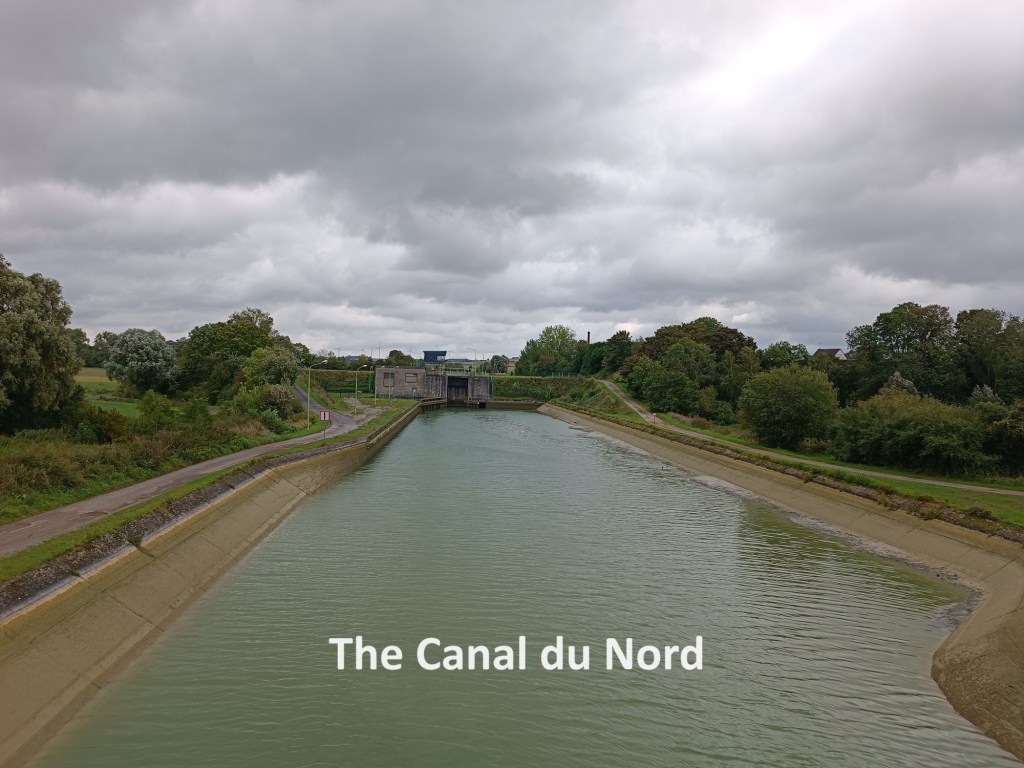 Today, Bouchavesnes-Bergen is a peaceful place with little other than monuments and cemeteries to remind us of the carnage of a century ago. I went on south from the village to the Canal du Nord. While canal building is mostly associated with the era before steam and petrol, the Canal du Nord is a relatively modern construction. Building began in 1908 with the purpose of transporting coal from the mining areas to the north. Construction halted during WW1 and was only completed later.