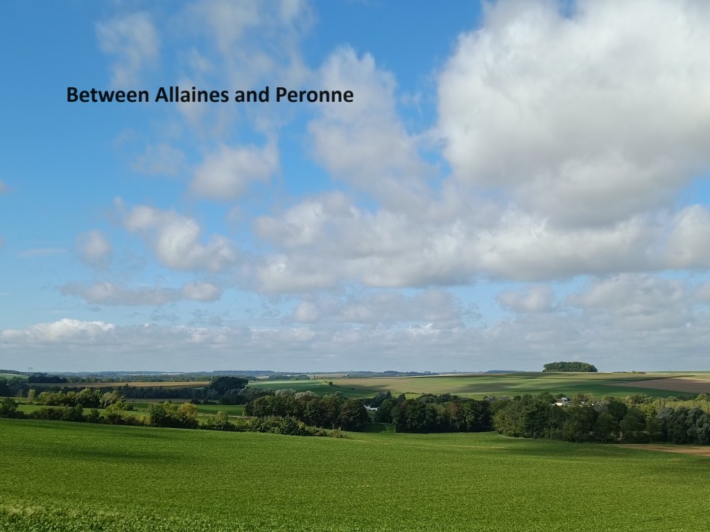 Early in the morning, I made myself a light breakfast, then gathered up my things, and got ready to go on the trail. I left the accommodation and went back to the centre of Villers-au-Flos. I probably could have gone a little further east and rejoined the official trail there, but I chose to do it my way. I left the village going south. This area of the trail was in territory occupied by the German army for most of WW1, and I passed several signposts for German and allied cemeteries. The  knowledge of the past conflict and the carnage that happened here contrasts starkly with the peaceful agricultural environment of the present.
