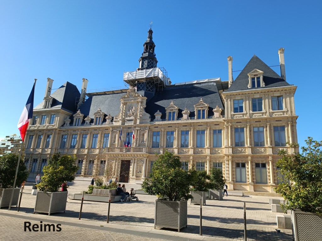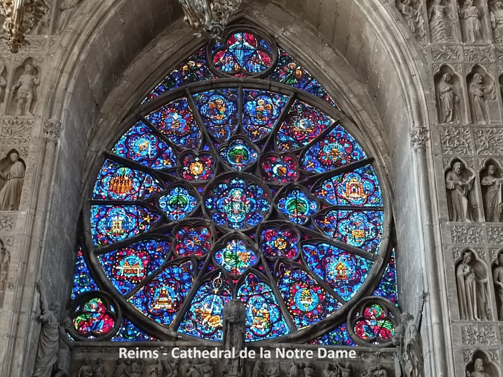 In the city I turned away from the canal and walked the short distance to the cathedral. It is another Cathedral de Notre Dame. In WW1, the German army entered Reims on 4th September 1914. They left the city on 13th September as the Battle of the Marne unfolded. On the 14th, the French army entered the city. On 19th September 1914, the roof of the cathedral caught fire, and the building remained roofless for the remainder of the war. Reims was close to the front line, and was only considered safe after October 1918. Reconstruction was not completed until 1938. In 1962, Reims was the scene of a meeting between Charles de Gaulle and Konrad Adenauer. The two men pledged to reconciliation between their countries, looking to the future. They were met at the door of the cathedral by Monsignor Marty, who told them that “To offer the hand is good. To offer the heart is better.” It was the start of a process that has led to the Europe we know today.