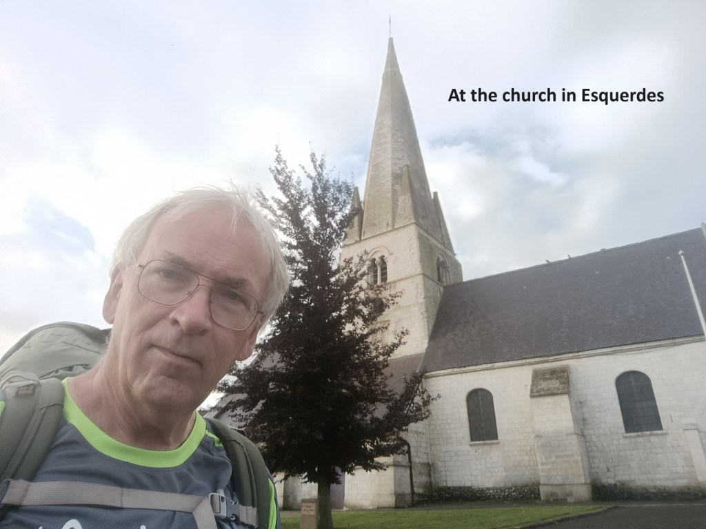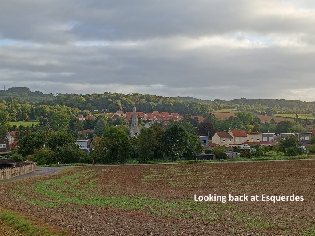 To get back on the trail, I had to go back up through the village to the centre of Hallines. I was still a few kilometres off the official route. From Hallines, the direct way back onto the trail was to follow the D211 road for about 2km to Esquerdes and rejoin the trail there. I am not keen on walking on D roads in France. They are quite variable in quality and traffic levels. They can be quiet country roads, or they can be busy main roads with articulated lorries regularly thundering past. This one was somewhere in between those extremes, but luckily it had a footpath in the margin beside the road. I guess that when two villages are as close to each other as Hallines and Esquerdes, people walk between the two.