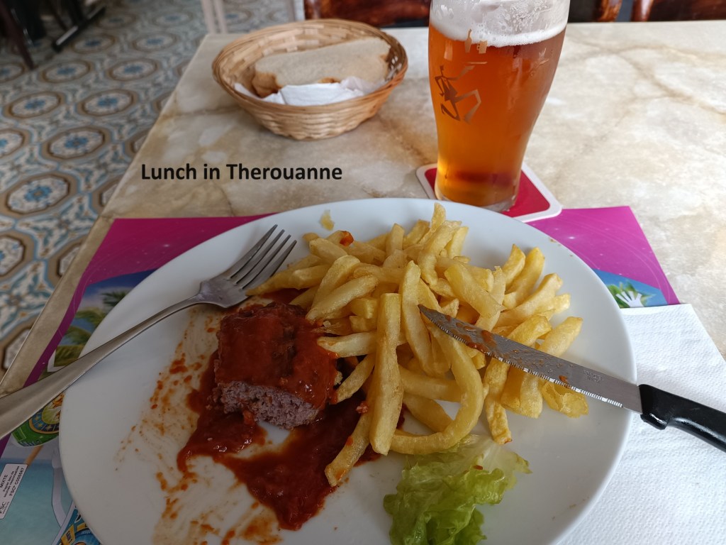 Compared to the villages that I had come through in the course of the morning, Therouanne is much more significant, with supermarkets, banks, and so on. I made it to one of the cafes in time to get lunch. It was one of those establishments frequented by the local farmers, with food that was sustaining and energy-giving, but not sophisticated by any means. But that was exactly what I needed. Thus refreshed, I made my way to the gite that was to be my accommodation for the night. The owner of the gite had sent me the code for the door, and I let myself in.