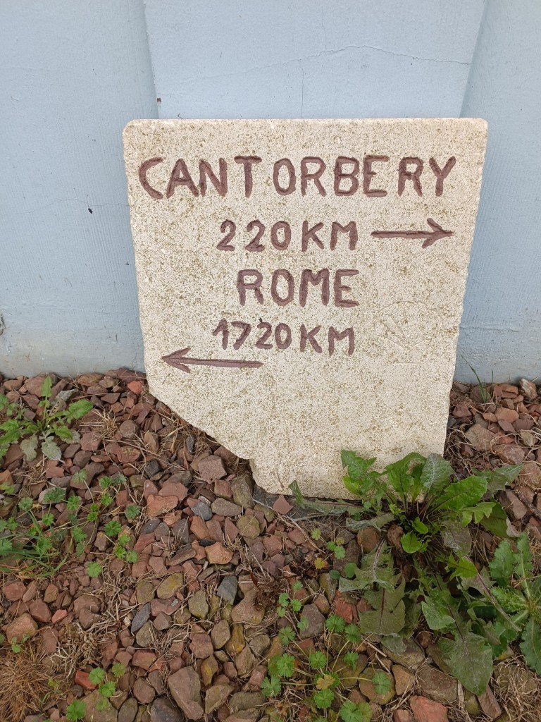 The route bypassed Boisleux-Saint-Marc, and I had no problem with that. Near the village, there was a small wayside chapel with a sign that told me that I was 220km from Canterbury and 1720km from Rome. The numbers don’t match with the guidebook, but they did at least tell me that I was solidly embarked on my quest. And then I was into woodland again. At Hamelincourt, the official route goes to the east of the village, but I decided to follow the D12 road through the village, knowing that I would meet up with the official route again on the southern side. I left the village, going on out into the flat countryside beyond. By now, the day had brightened considerably, and an even warmer afternoon was in prospect.