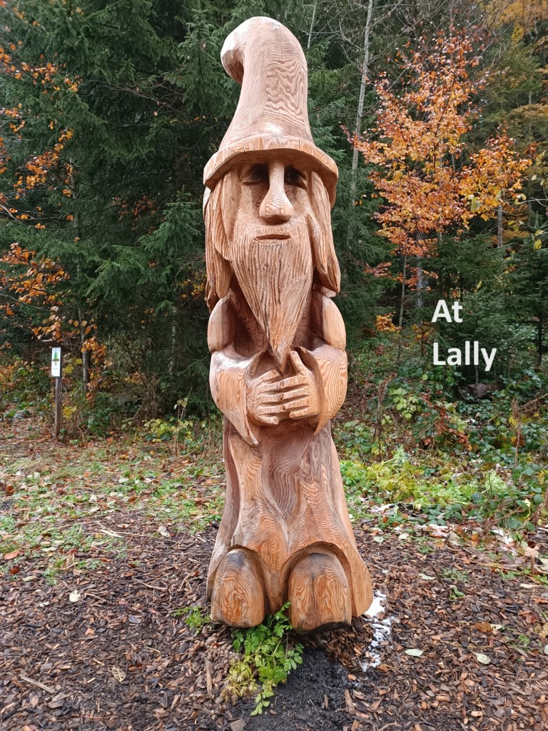 No matter, I thought and went on. There followed a steep ascent to bring me back up to the 1100m level. After that, there was a more gentle ascent of about 35m, and after that, the route was flat for a few kilometres. The trail joined a road and followed it for a while. I passed the Buvette les Mossettes, flagged as a restaurant on the map. Needless to say, in these cold days of November, it was closed, the summer season long over, and the winter season not yet begun. After that, I had a short ascent to the high point at 1219m. The map has this area marked as marshland, and they are correct. Much of this part of the route is on a wooden causeway. Stepping off the causeway immediately has one in the marsh. I followed the causeway on past Les Motalles, and down to the road and the ski resort at Lally. There were a few walkers who had driven to the ski resort and were taking leisurely strolls on the various trails around the resort.