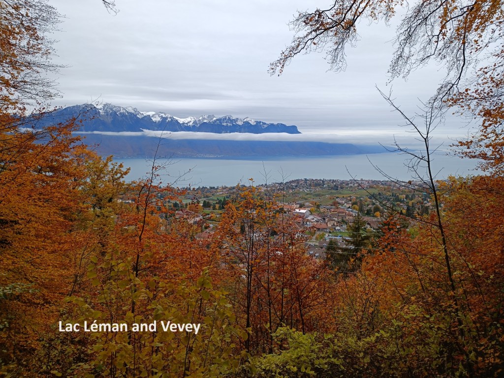 Lally, at 1240m, actually has a train station. There is a rack line that comes up from Vevey to Lally, and even a little beyond. I guess I could have waited for the train to take me down the mountain, but that was not in the plan. I descended on foot. It is not a very steep descent, but not exactly easy either. It was not long before I had my first view of Lac Léman, or Lake Geneva as it is otherwise known. Out of respect to the local people, I will use the French name here.