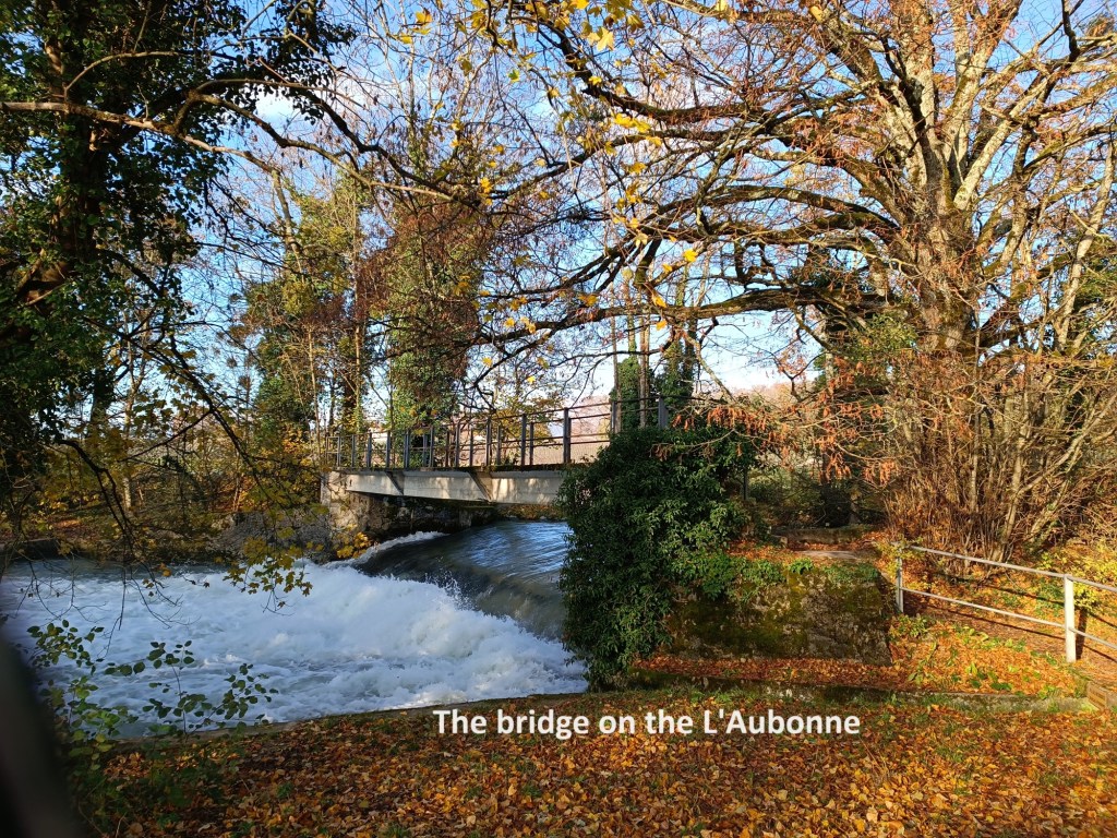 After Buchillon, I was back onto fields again, before turning north to where the route crosses the L’Aubonne river. After crossing on the bridge, the route is marked as blocked. The reason given is the danger of flooding from the river. I saw no flooding, but decided to follow the warnings anyway, and I took a farm track to bring me to the road at Chaney. I followed the road on into Allaman, where I once again was on the official route.
