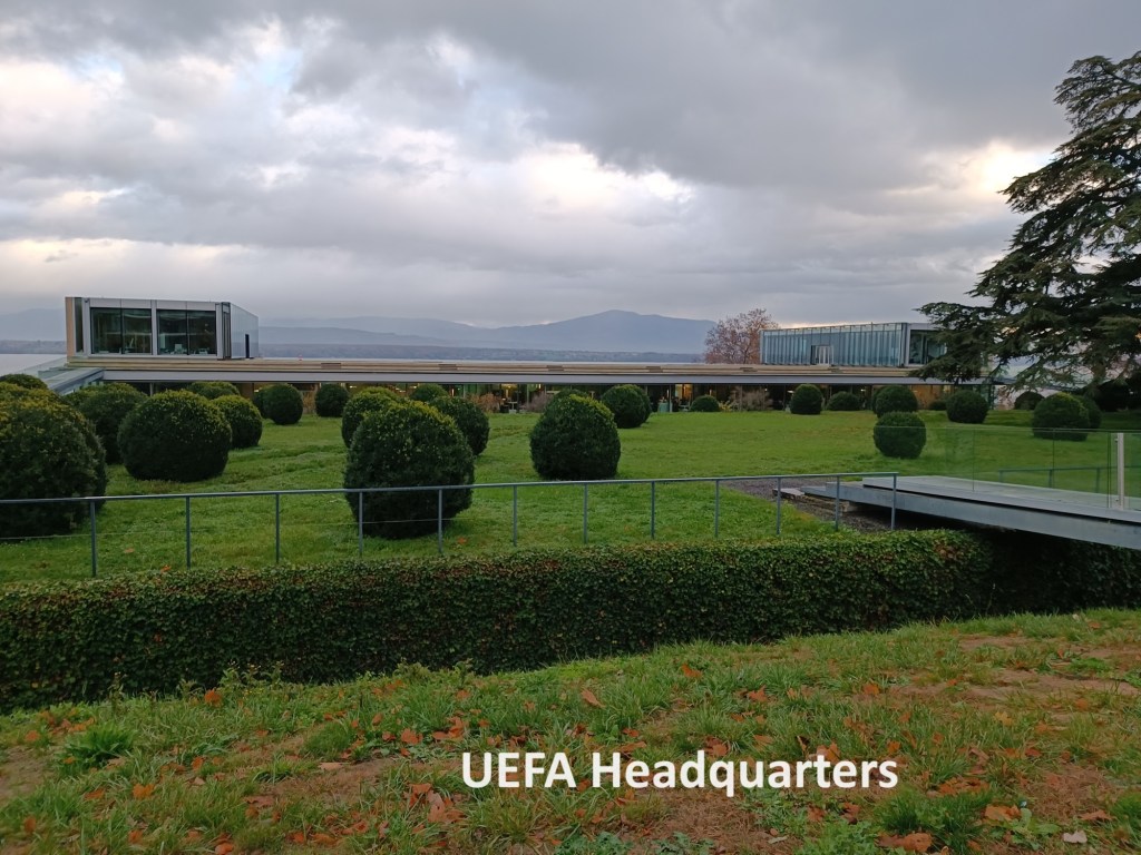 After the centre of Nyon, the road left the lakeshore, but without going far inland. In Lausanne, I had passed the headquarters of the International Olympic Committee, and as I went on out of Nyon, I passed the EUFA headquarters. I continued on, ignoring the settlement of Les Landes, but taking the turn shortly after that to go uphill to the village of Crans. Once there, I decided that was as far as it was practical to go that day, and I joined the group of people at the bus stop waiting for the bus into Nyon. I did not have long to wait, and then I was on my way back to Basel.