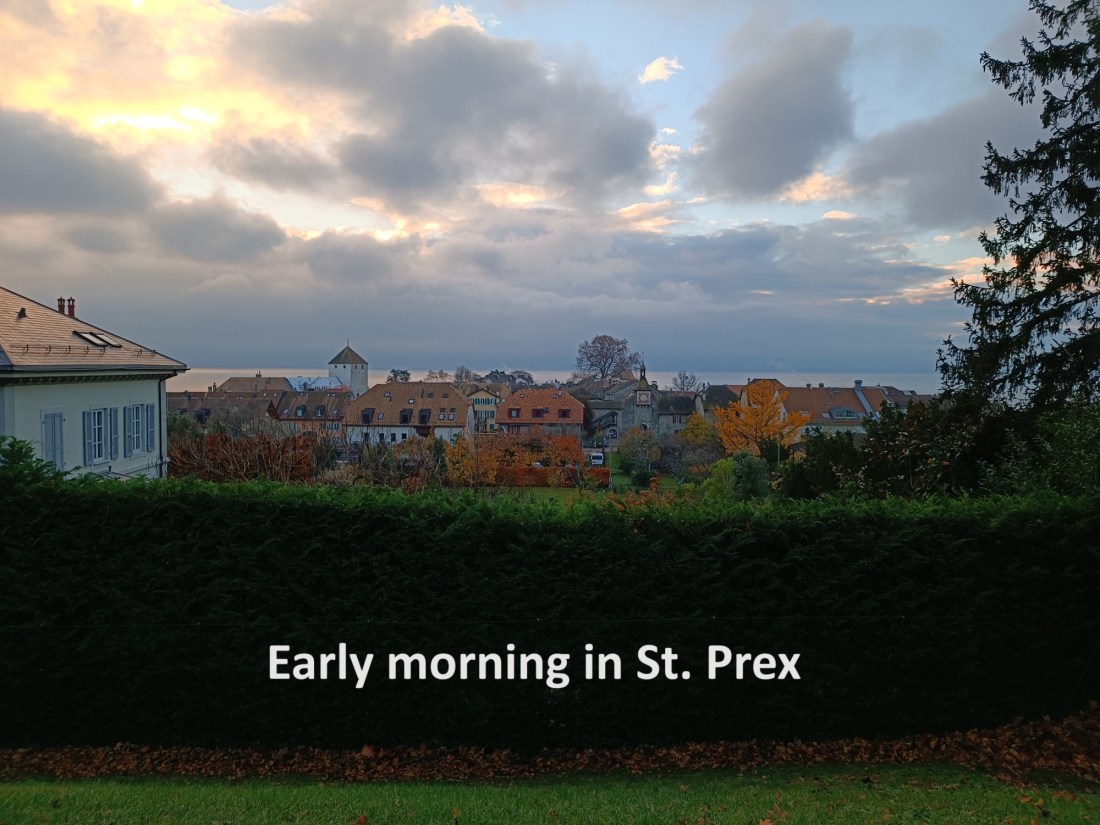 The route goes south from the train station, reaching the old part of the village near the lake shore. On this early morning, everything was fairly quiet. I didn’t spend much time in the village itself but continued on my way. In the village, the trail turns westwards, and follows the shoreline through the district of Moraine to Coulet.